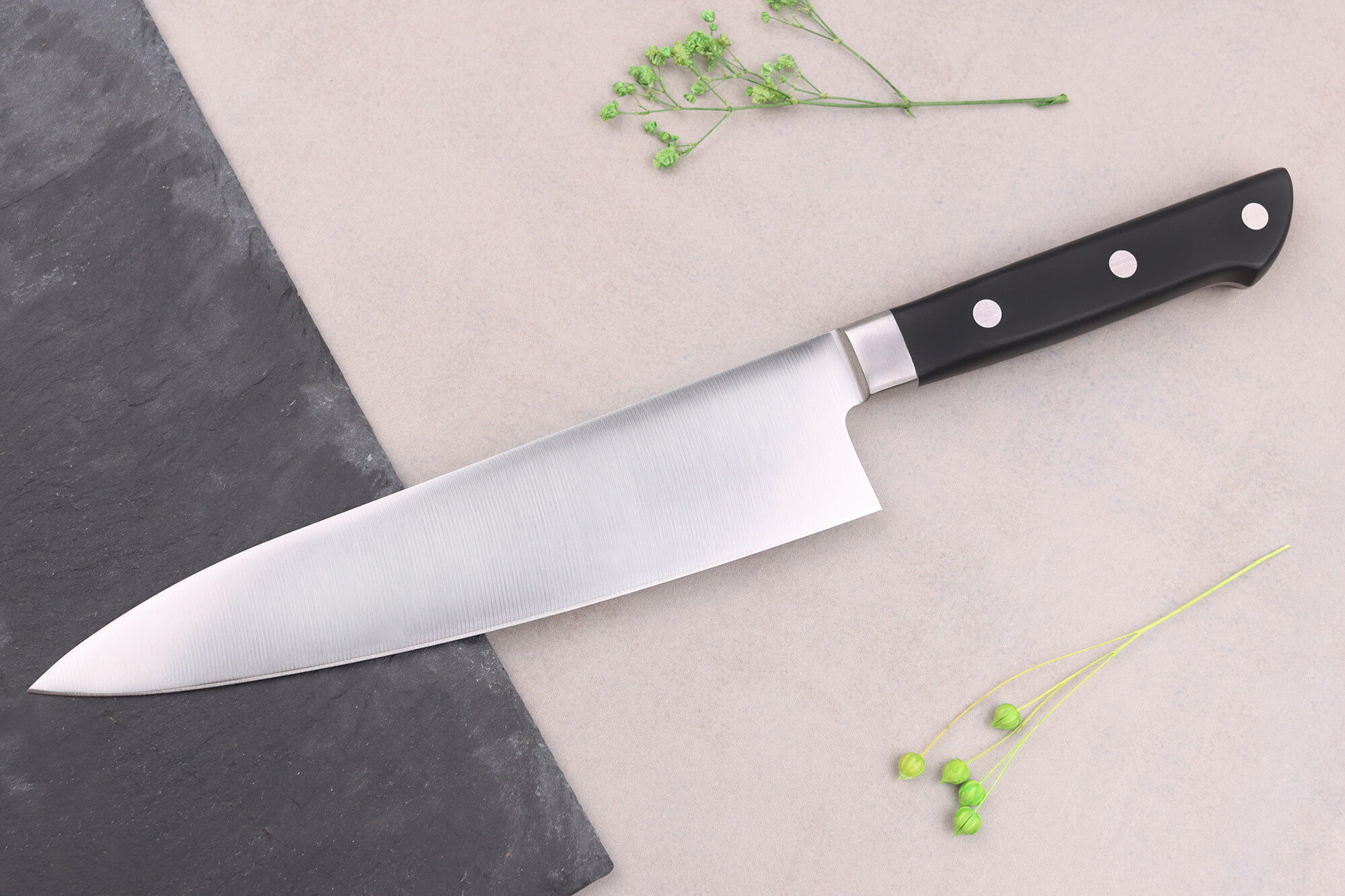Ce manche est taillé de forme occidentale pour convenir aux mains de tous les cuisiniers, gauchers comme droitiers ! Il vous garantit une prise en main ergonomique pour une utilisation confortable, notamment lors des usages prolongés en cuisine.