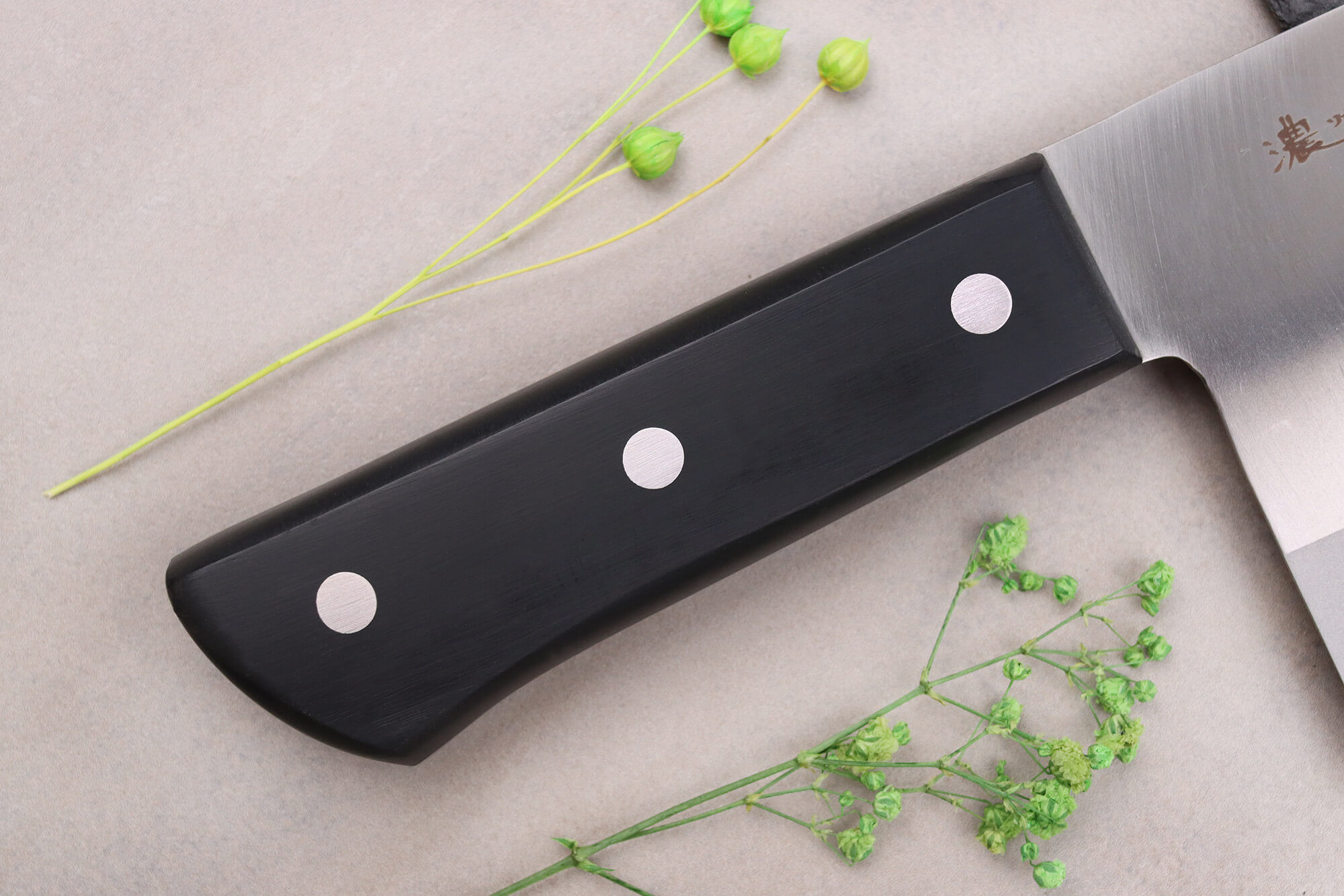 Ce couteau de cuisine japonais possède un manche fabriqué en ABS noir, un matériau synthétique qui est apprécié pour sa robustesse et sa durabilité. Il résiste à l'abrasion et à l'humidité pour une grande fiabilité !