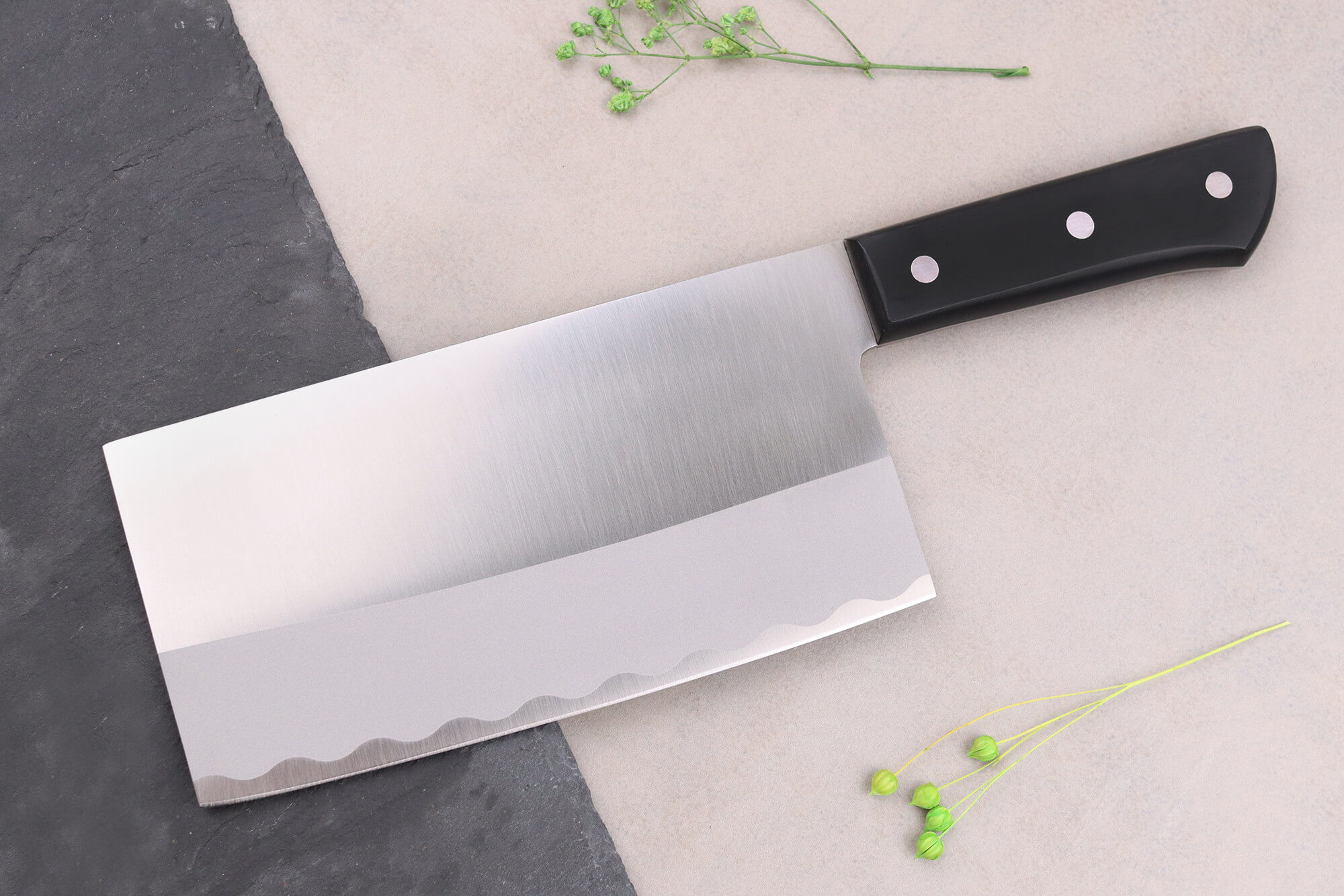Ce couperet japonais est muni d'une lame robuste en acier inoxydable, une matière résistante face aux chocs et à la corrosion. Elle est enrichie en molybdène et en vanadium qui sont des éléments permettant d'accroître la dureté de l'alliage. Ce dernier atteint donc une dureté de 57HRC sur l'échelle de Rockwell pour vous assurer des découpes efficaces et durables.