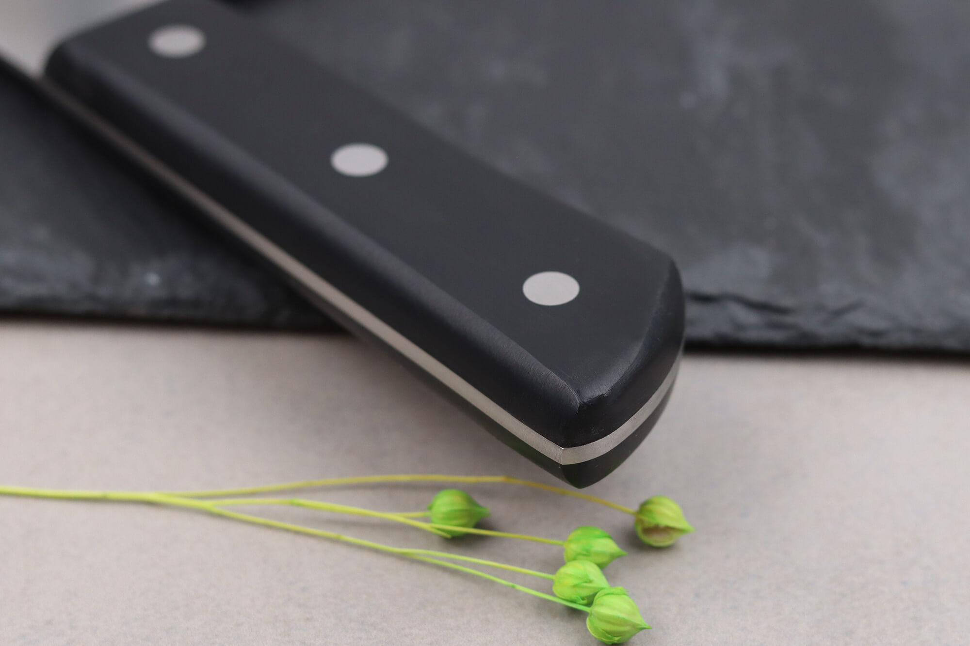 Ce manche est de forme occidentale pour convenir aux droitiers comme aux gauchers. Il vous offre une prise en main ergonomique pour un confort d'utilisation optimal, notamment lors des usages longues durées en cuisine !