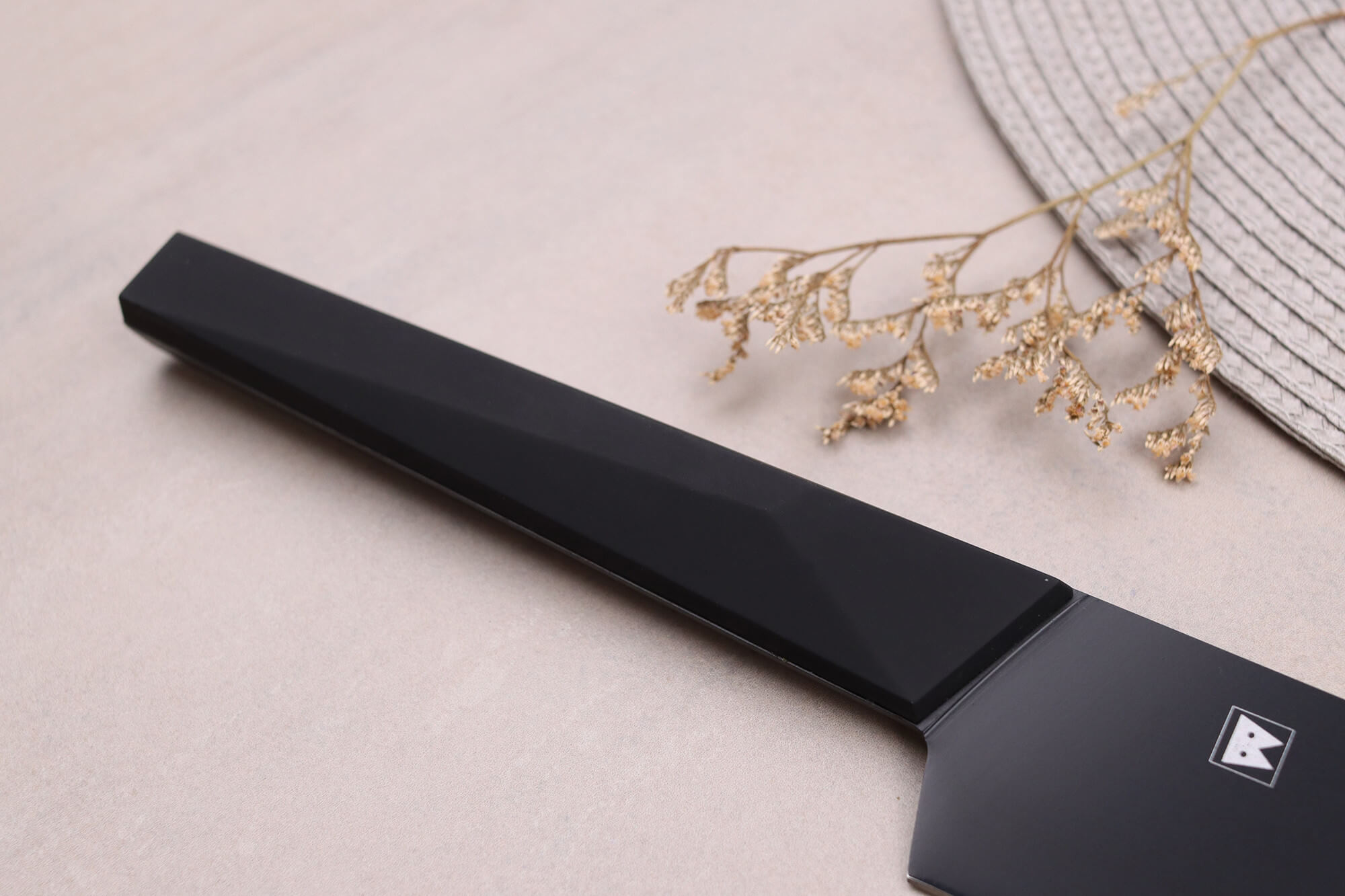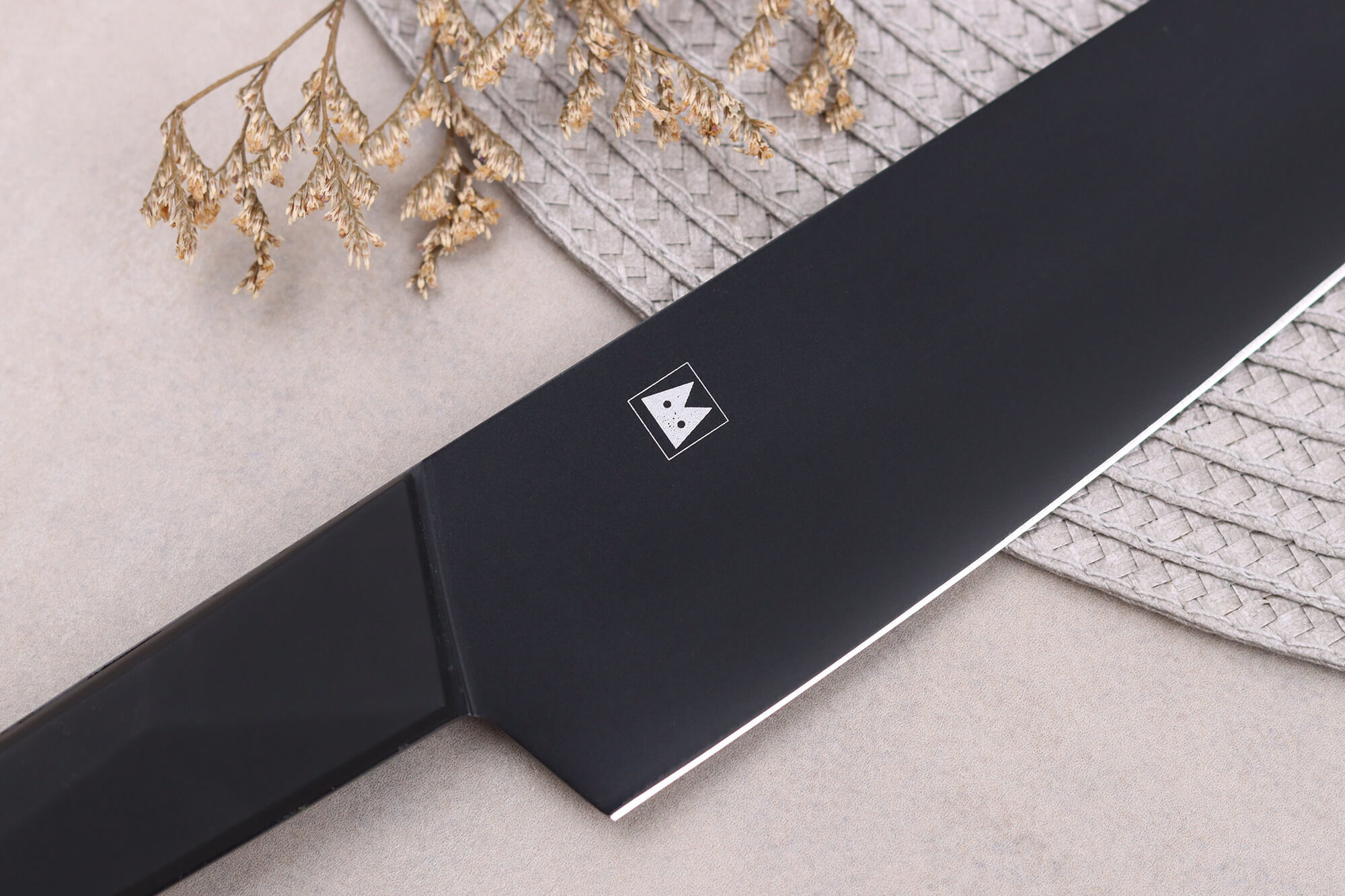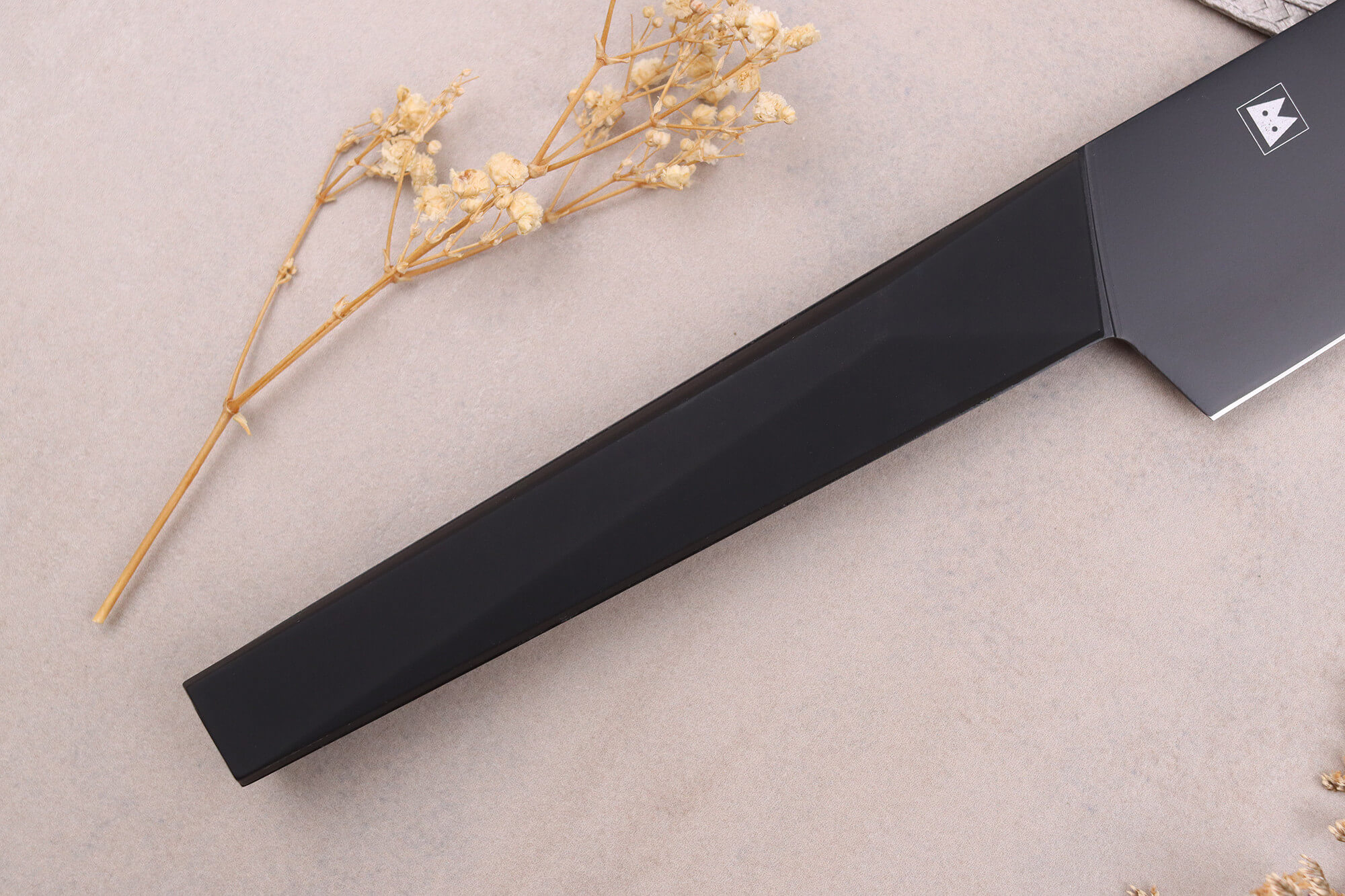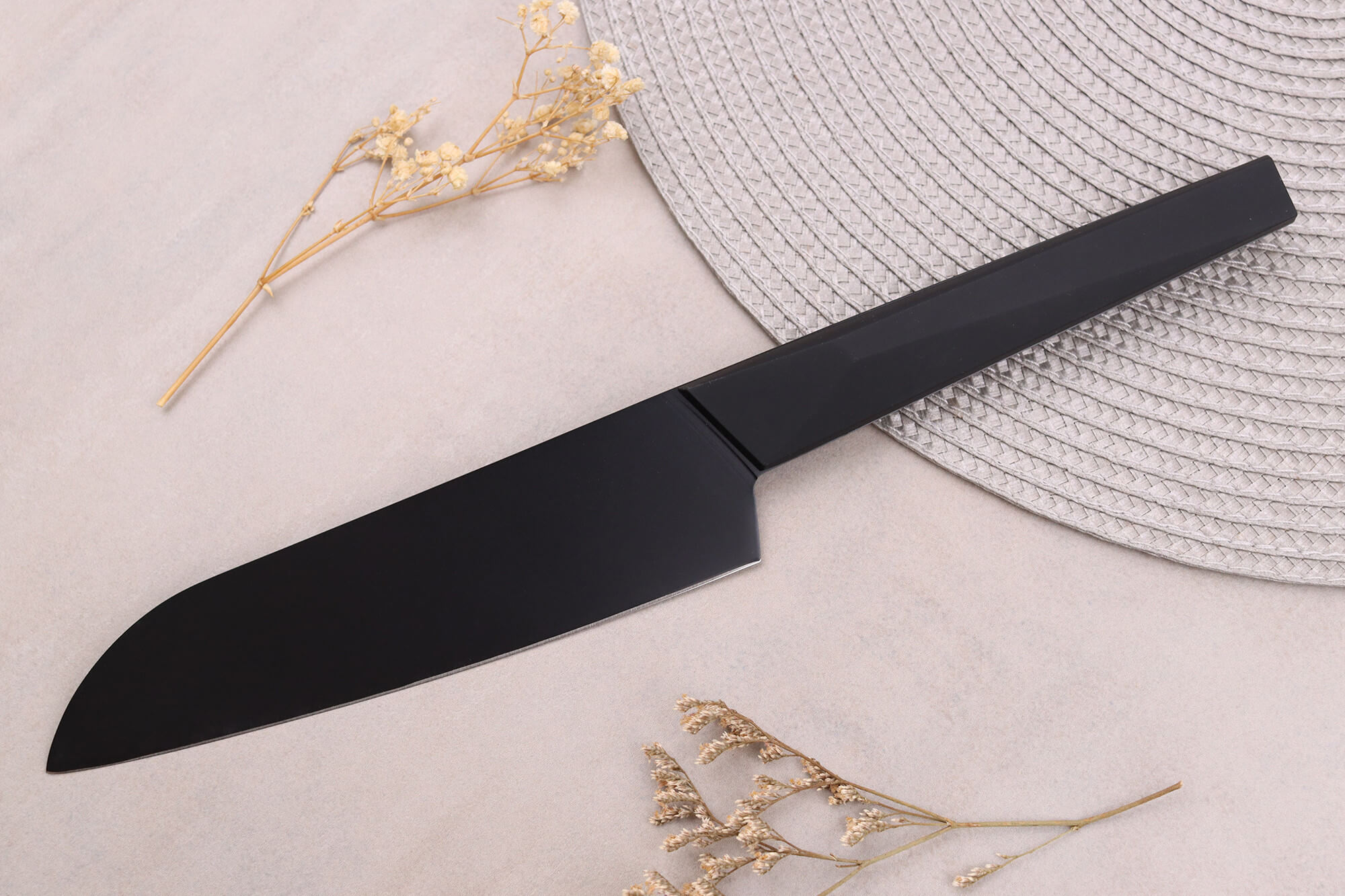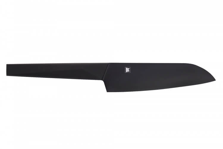 Ce couteau santoku japonais est pré-aiguisé au laser pour être prêt à être utilisé dès réception. Sa lame arbore une finition noir mat unique, ajoutant une touche de design distinctif. Le manche, également noir, crée un effet minimaliste très contemporain, apportant une note de modernité à votre cuisine.