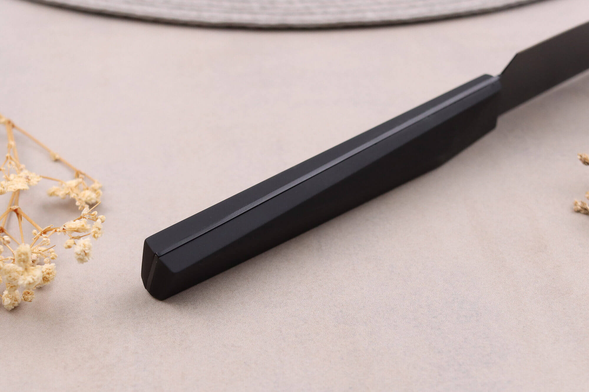 Pour entretenir ce couteau noir, il est important de le laver uniquement à la main avec une éponge non abrasive. Après le nettoyage, séchez-le immédiatement et rangez-le dans un endroit sec. Il ne faut pas le passer au lave-vaisselle, ni le laisser tremper dans l'évier.