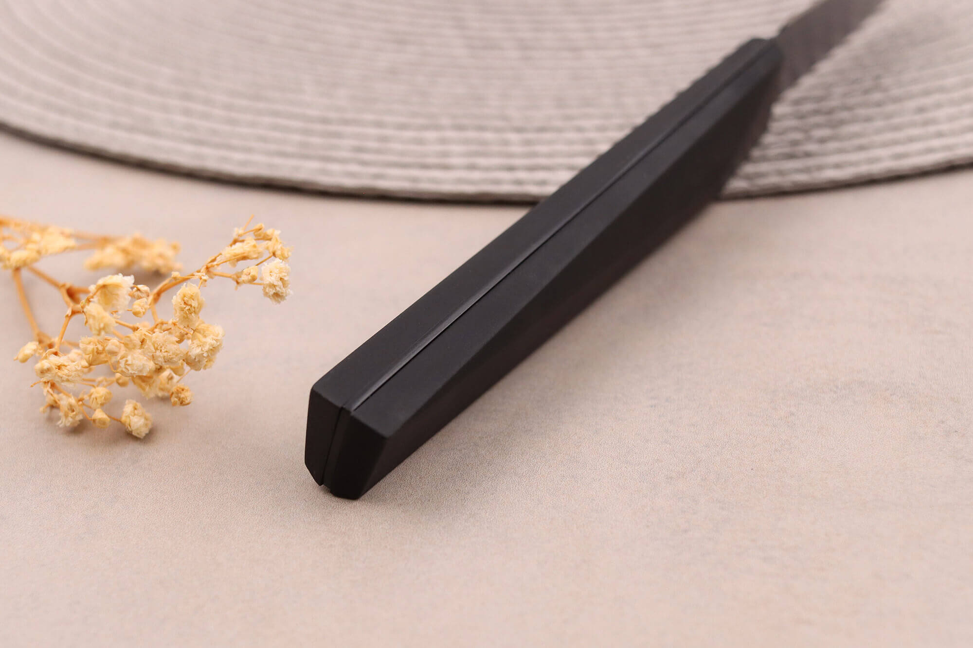 Vous pouvez aiguiser votre couteau japonais à la pierre ou l'affûter régulièrement avec un fusil à aiguiser pour conserver un tranchant toujours efficace. Cette dureté représente le compromis idéal entre facilité d'aiguisage et performance de coupe !