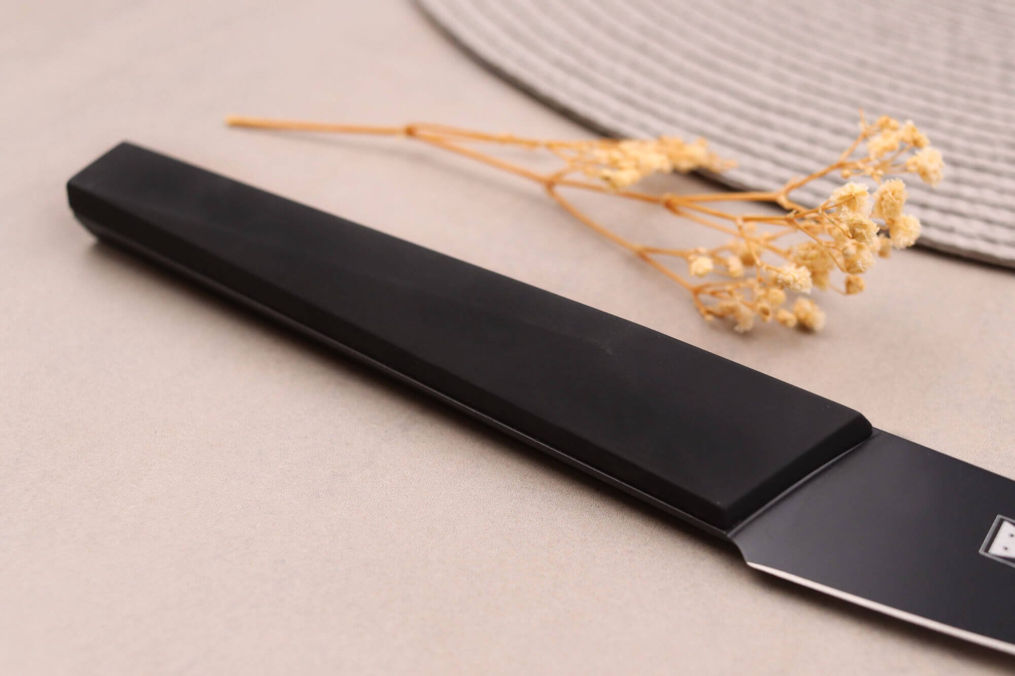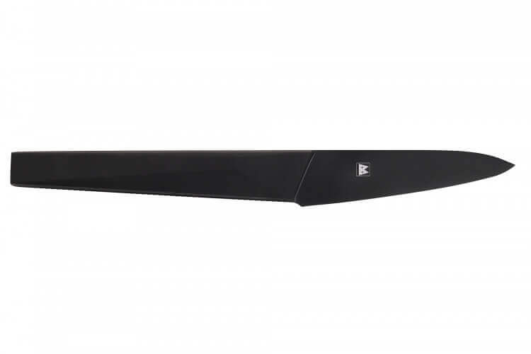 Ce couteau d'office japonais est pré-aiguisé au laser, afin d'être prêt à être utilisé dès sa réception. Cette lame dispose d'une finition originale car elle arbore une teinte noir mat pour un design original. D'ailleurs, le manche est également de coloris noir pour un effet minimaliste très contemporain qui ajoute une touche de modernité à votre cuisine !