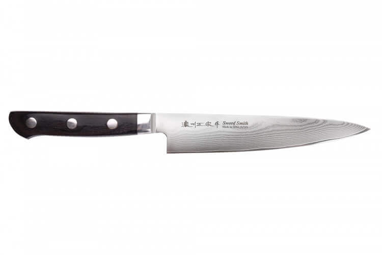 Ce couteau de cuisine japonais dispose d'une lame damassée : c'est une technique de forge qui consiste à réaliser un noyau en acier rigide qu'il faut, par la suite, entourer de plusieurs couches d'acier plus souples. Ce processus permet d'apporter à votre lame un équilibre optimal tout en protégeant son cœur.