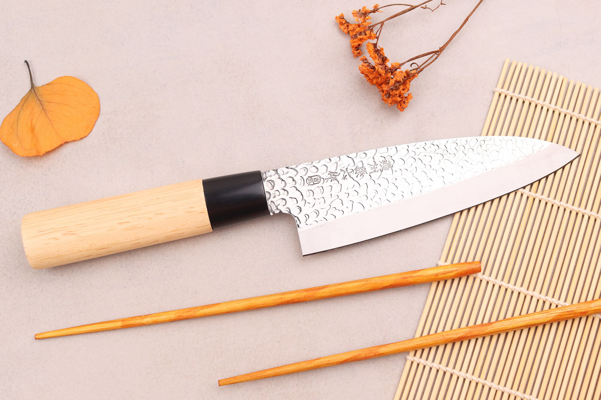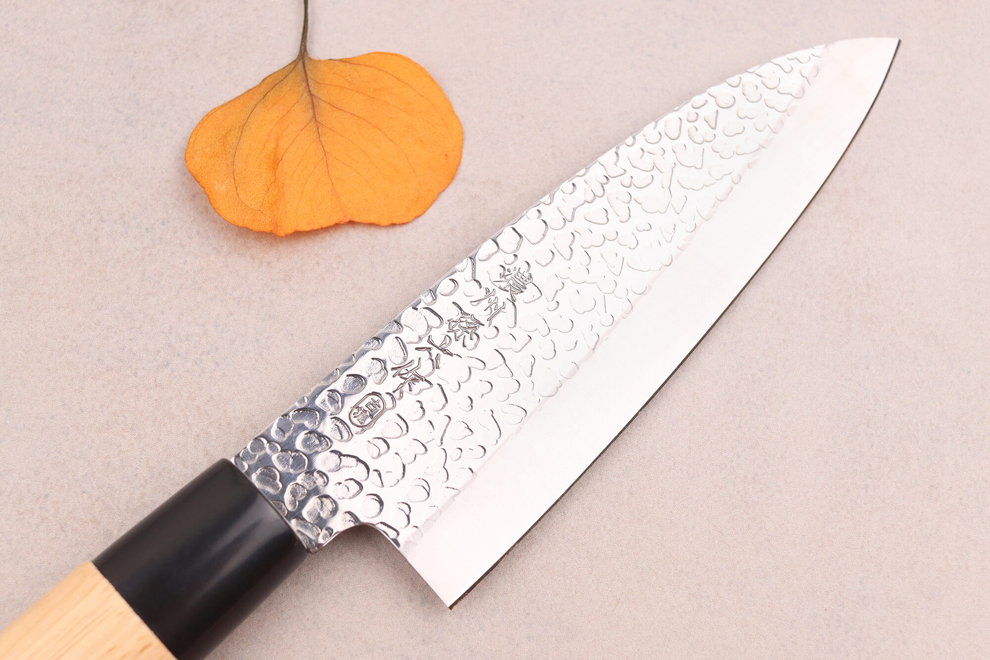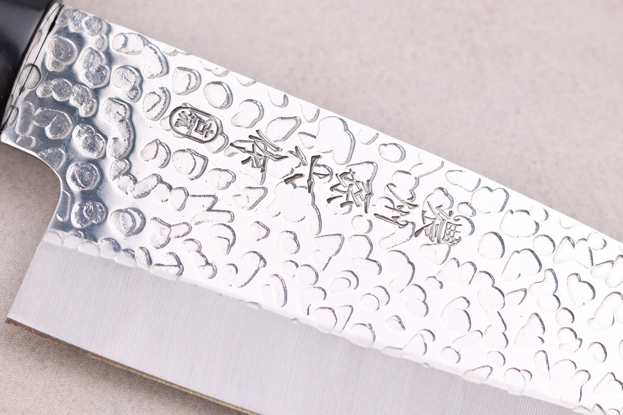 Ce couteau de cuisine japonaise a bénéficié d'un aiguisage laser pour une utilisation immédiate dès que vous le recevez. Sa lame polie est dotée d'une finition Tsuchime, qui est un martelage visible sur sa partie supérieure. Cela réduit l'adhérence des aliments humides ou gras. Enfin, des kanji ont été gravés sur la lame et lui apporte une touche authentique.