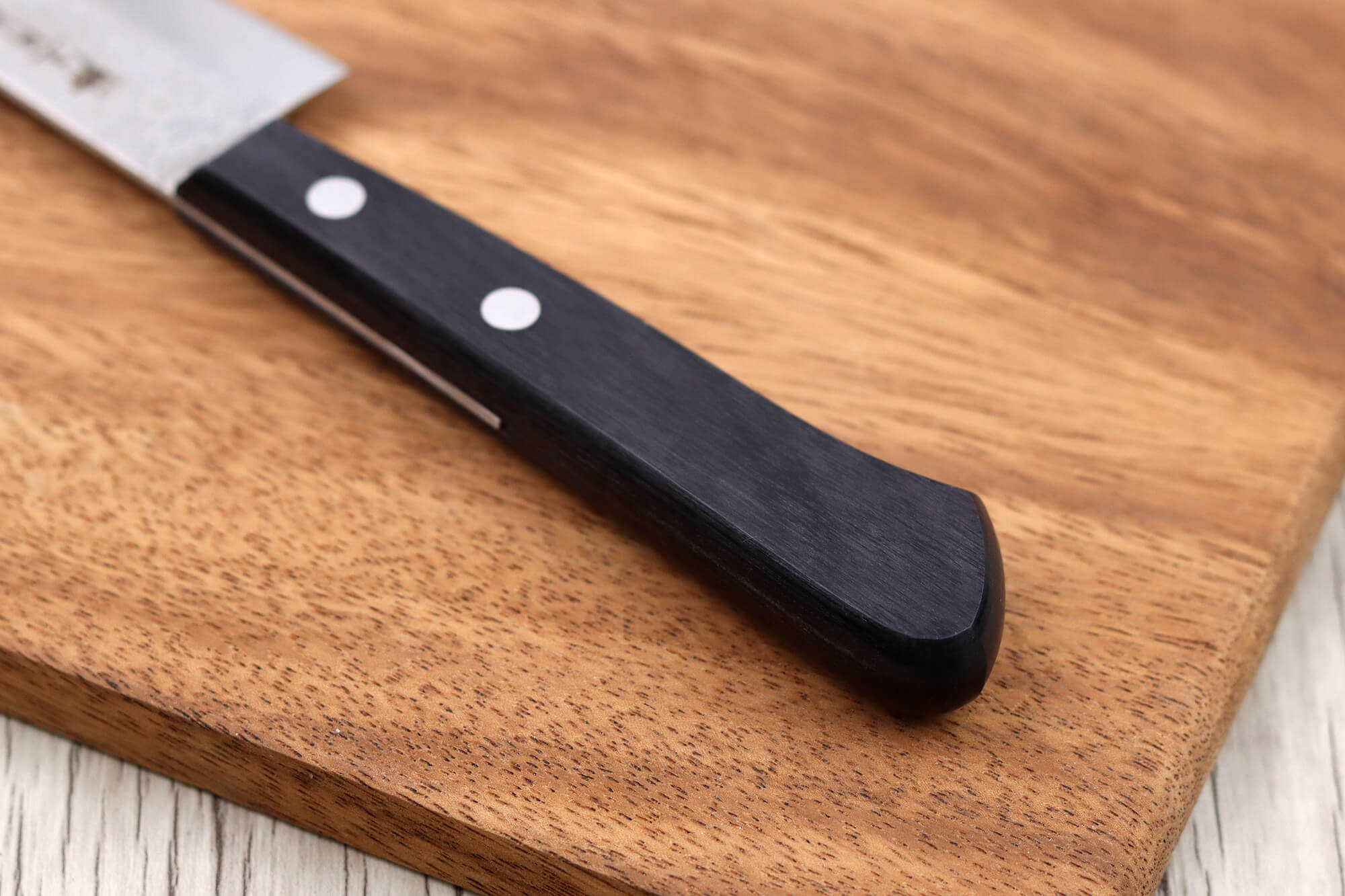 Le manche de vos couteaux de cuisine est réalisé en pakkawood noir, un matériau robuste et résistant à l'humidité. Cette matière composite est fabriquée à partir de bois laminé et de résine compressés à chaud. Vous profitez donc des avantages du composite tout en ayant l'aspect naturel du bois grâce au veinage qui se dessine.