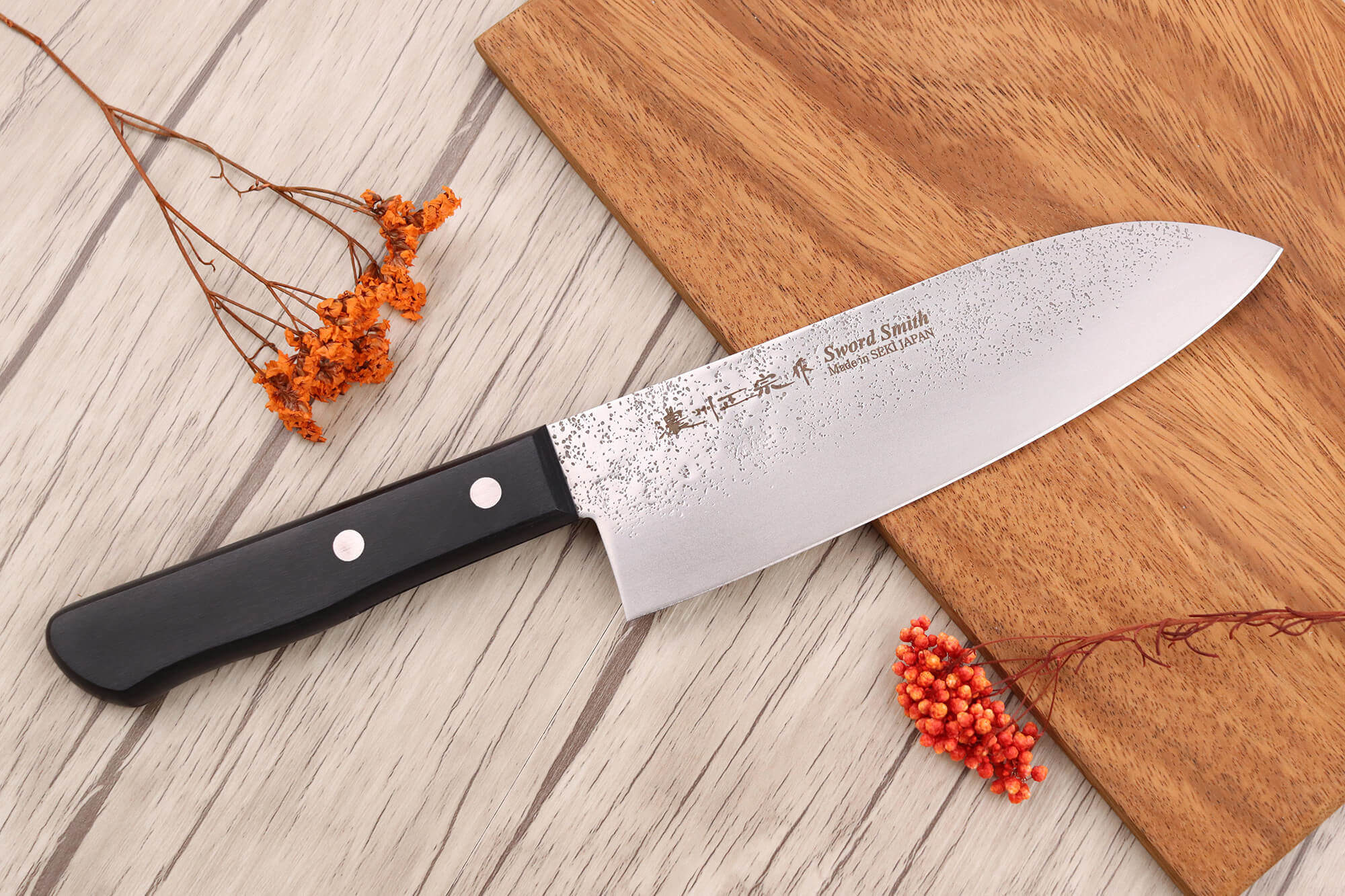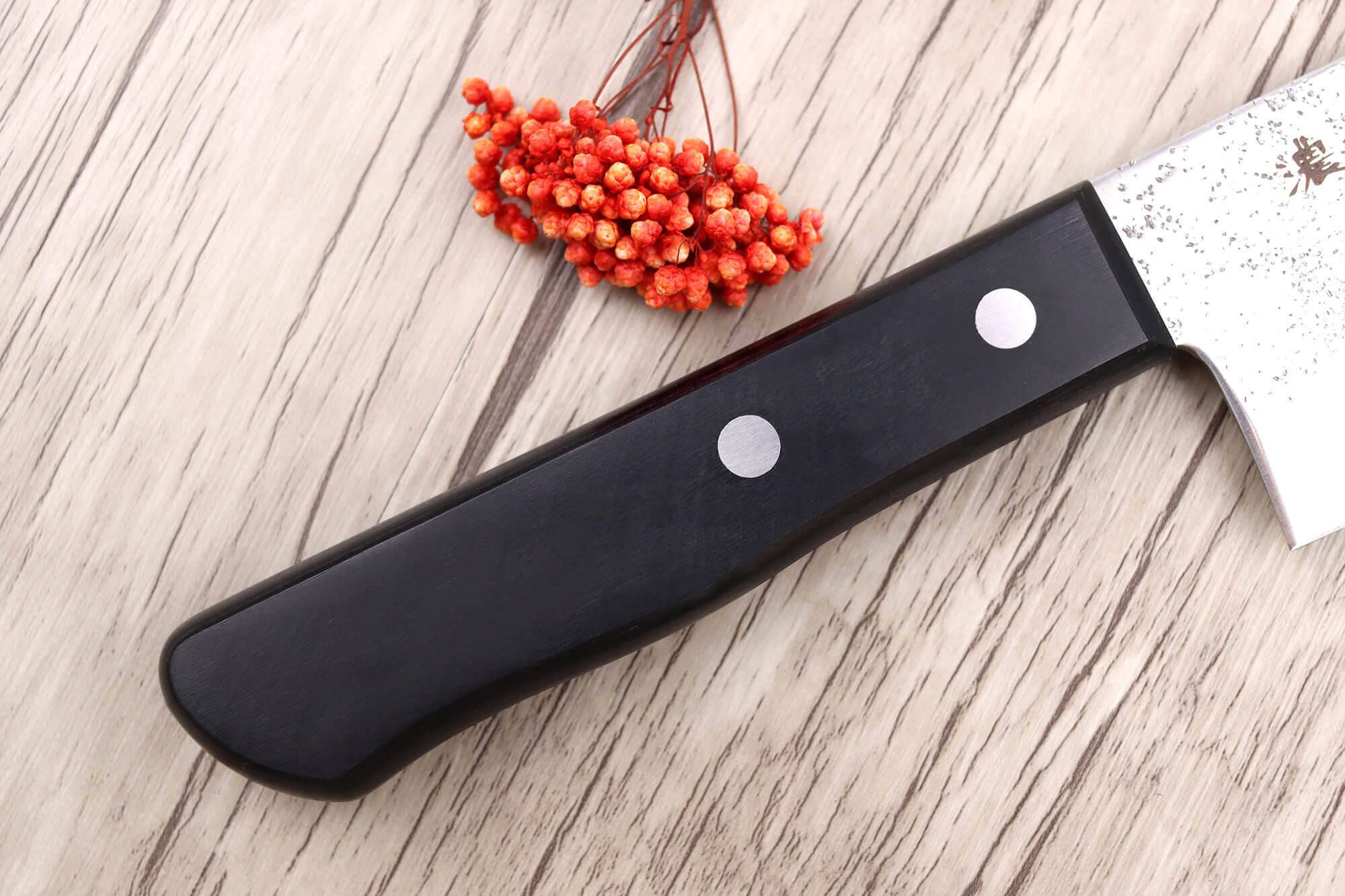 Ces couteaux japonais possèdent une lame fabriquée en acier inoxydable enrichi en molybdène et en vanadium pour une meilleure résistance face aux chocs et à la corrosion. Ce sont des éléments qui permettent de renforcer la dureté de l'alliage pour qu'elle atteigne une dureté de 57HRC sur l'échelle de Rockwell. Vos couteaux de cuisine sont donc faciles à aiguiser et conservent leur fil de coupe.