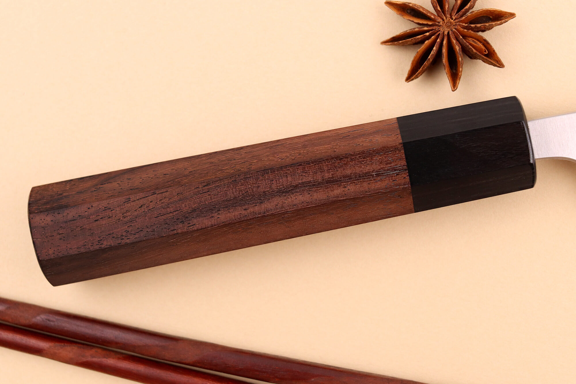 Le manche octogonal en bois de rose, associé à une mitre en pakkawood noir, propose une qualité de prise remarquable. Conçu pour un usage symétrique, il convient aussi bien aux droitiers qu’aux gauchers, avec un équilibre optimal pour un travail agréable et précis !