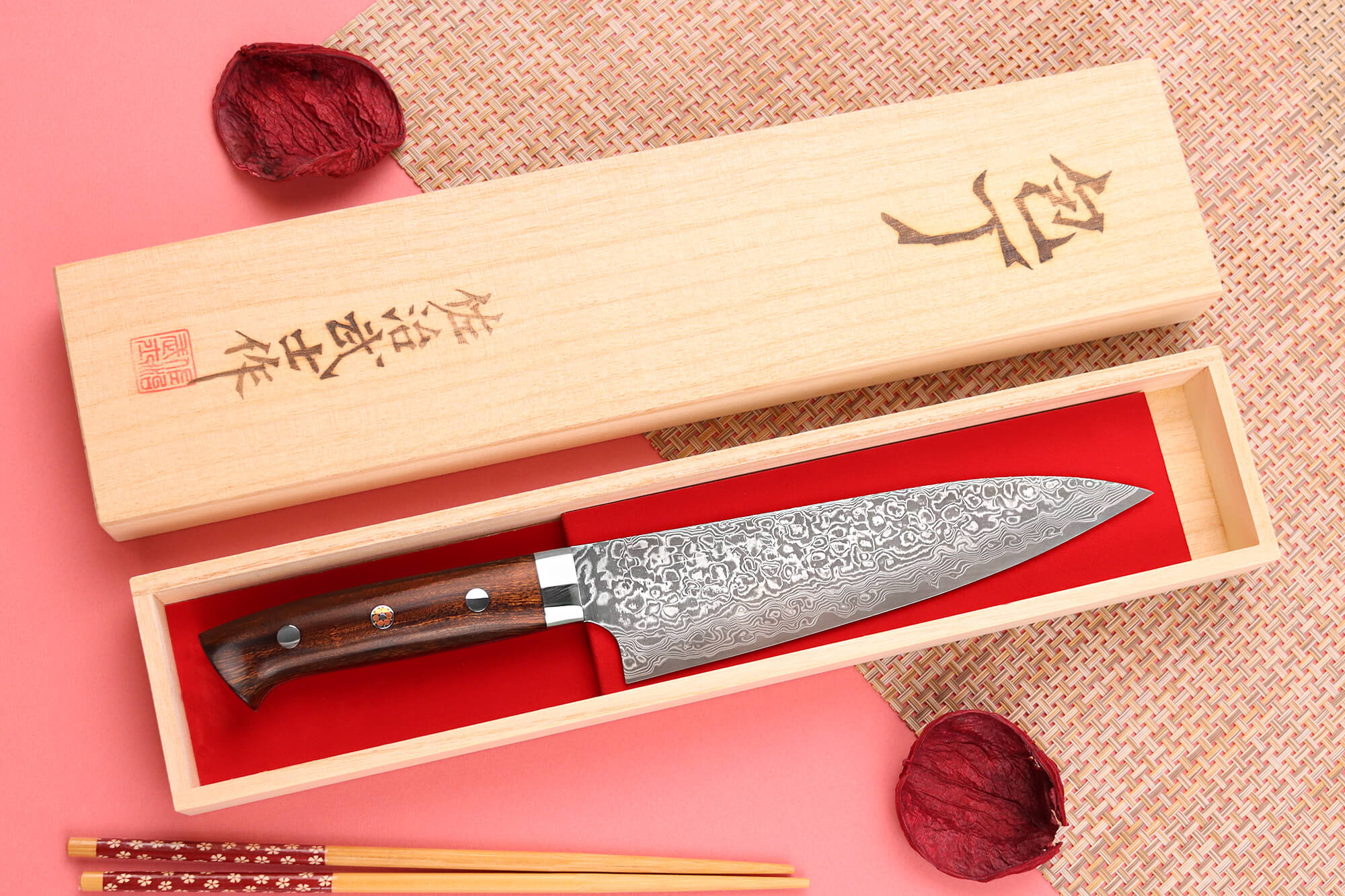 Ce couteau Takeshi Saji est rangé dans un coffret en bois qui est idéal pour offrir.