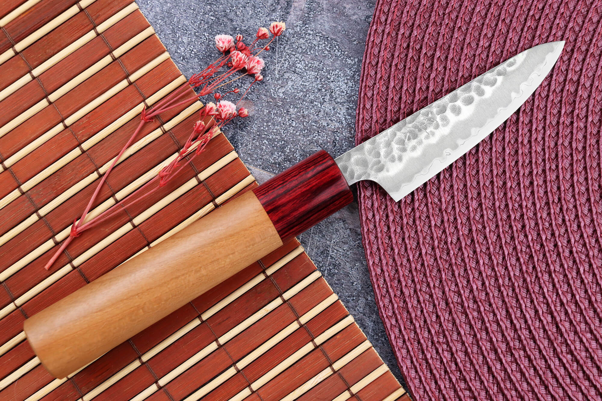 Pour finir, le couteau d'office dispose d'une belle finition martelée (appelée Tsuchime en japonais). Cela lui donne du caractère et le martelage est unique sur chaque pièce.