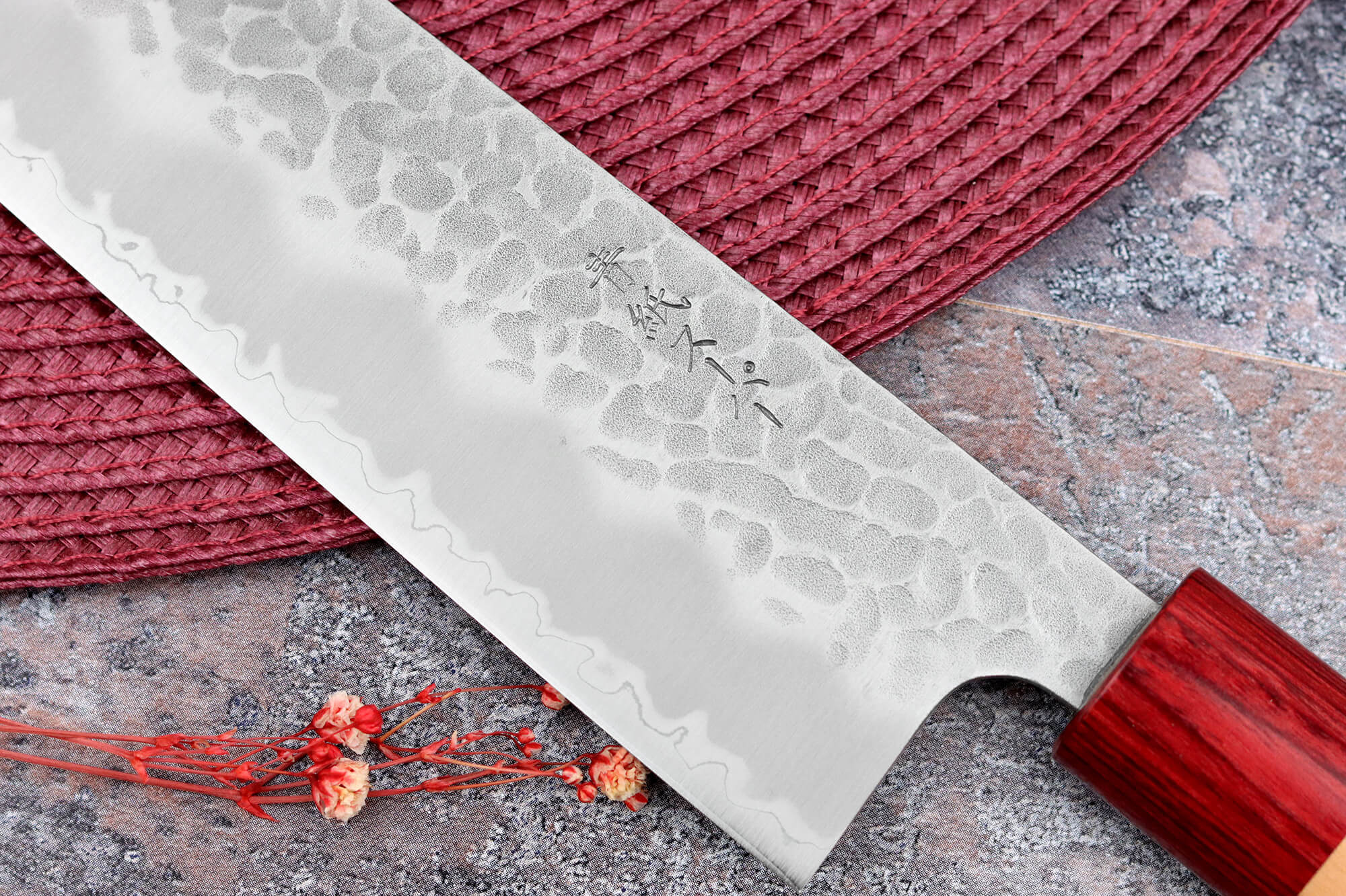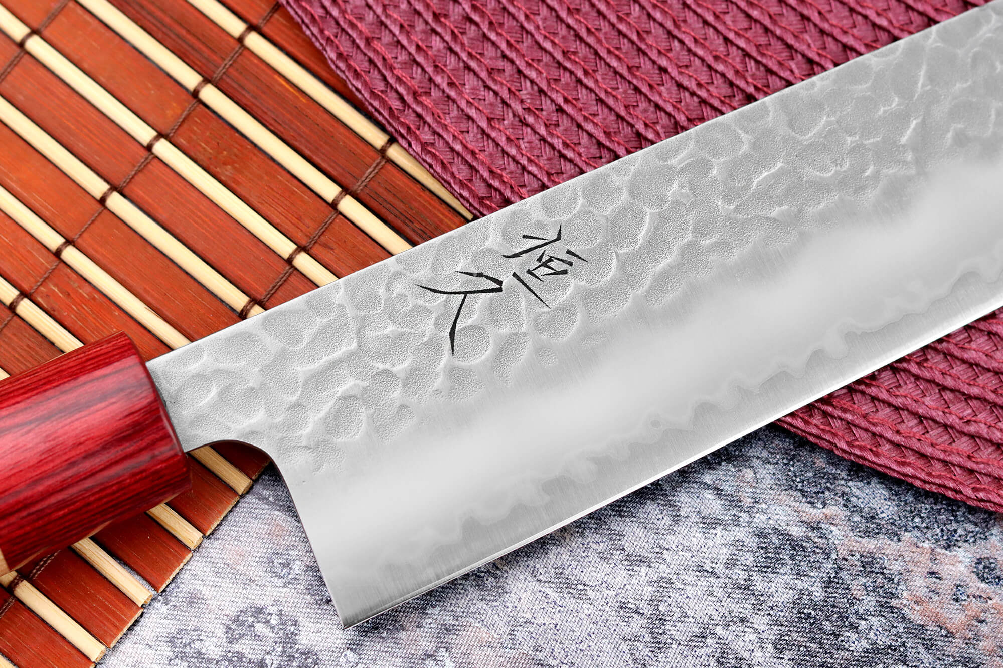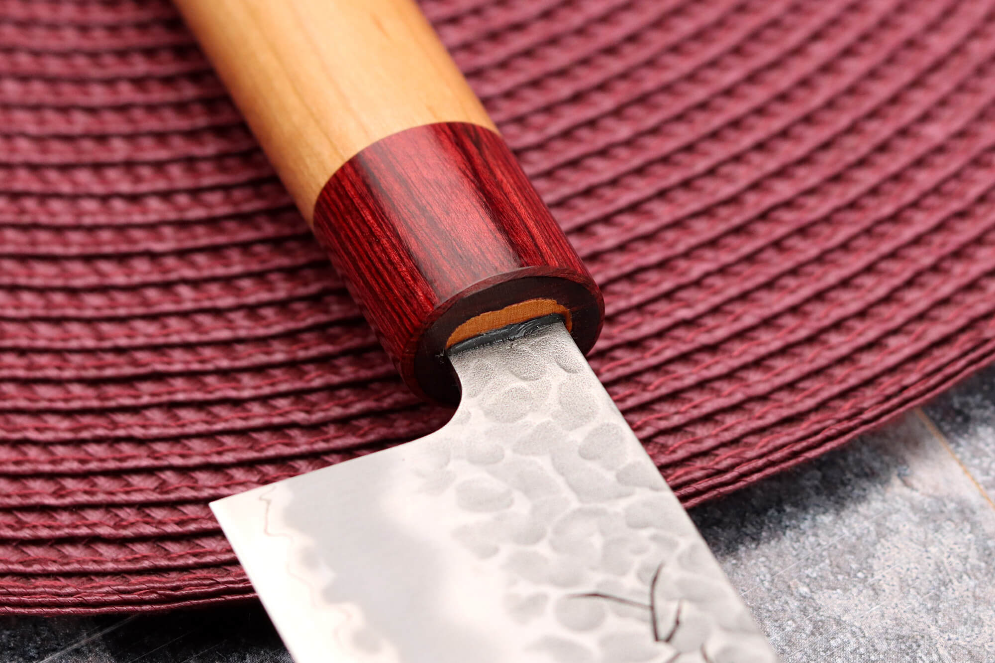 Au-delà de ses performances de coupe, ce couteau Tsunehisa séduit par ses finitions soignées ! Son aspect brut de forge et son martelage délicat lui confèrent un design authentique. En plus de son attrait esthétique, ce martelage réduit l’adhérence des aliments sur la lame, facilitant ainsi la découpe.