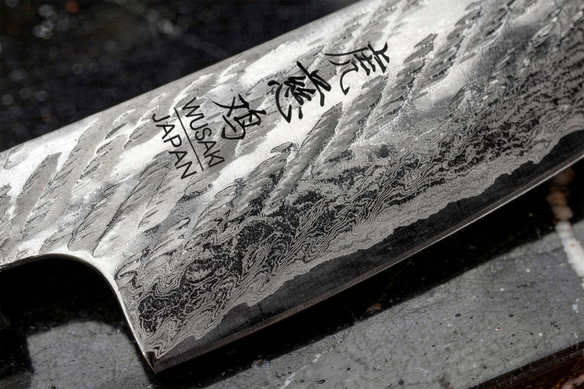 La lame du couteau artisanal japonais Wusaki est construite selon une structure damassée. Son cœur est réalisé en acier japonais Ginsan (aussi appelé G3), un alliage inoxydable à environ 0,95% de carbone, offrant une excellente tenue de coupe et une bonne résistance à l’humidité. Cet acier moderne est prisé dans la coutellerie japonaise pour son compromis entre performance de coupe et facilité d’entretien.