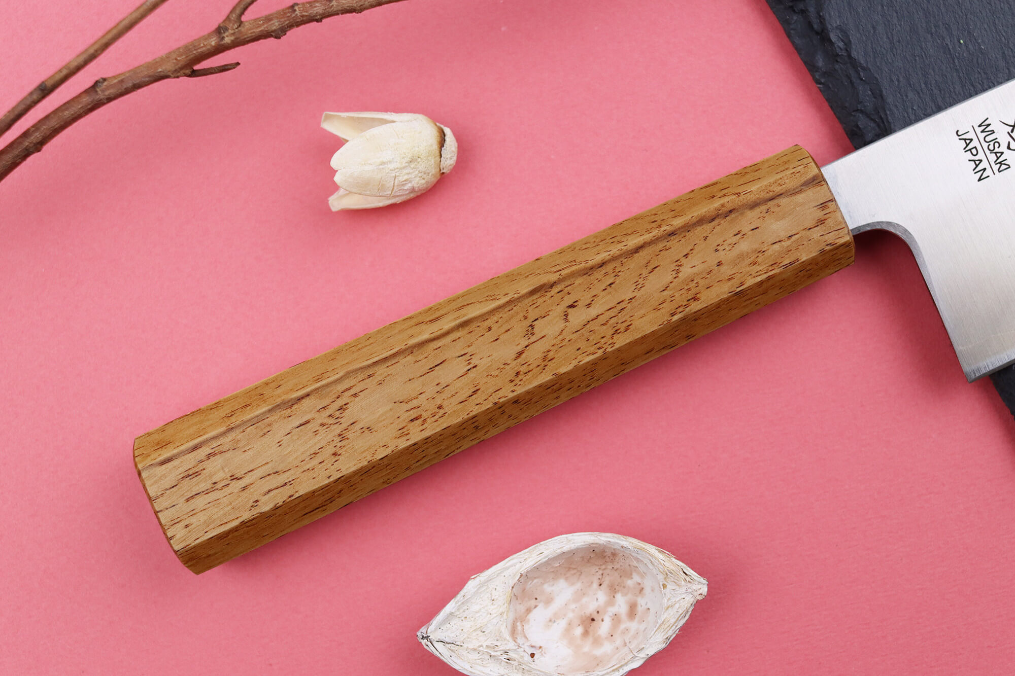 Couteau nakiri 16,5cm japonais artisanal Yuzo SLD olivier et sequoia