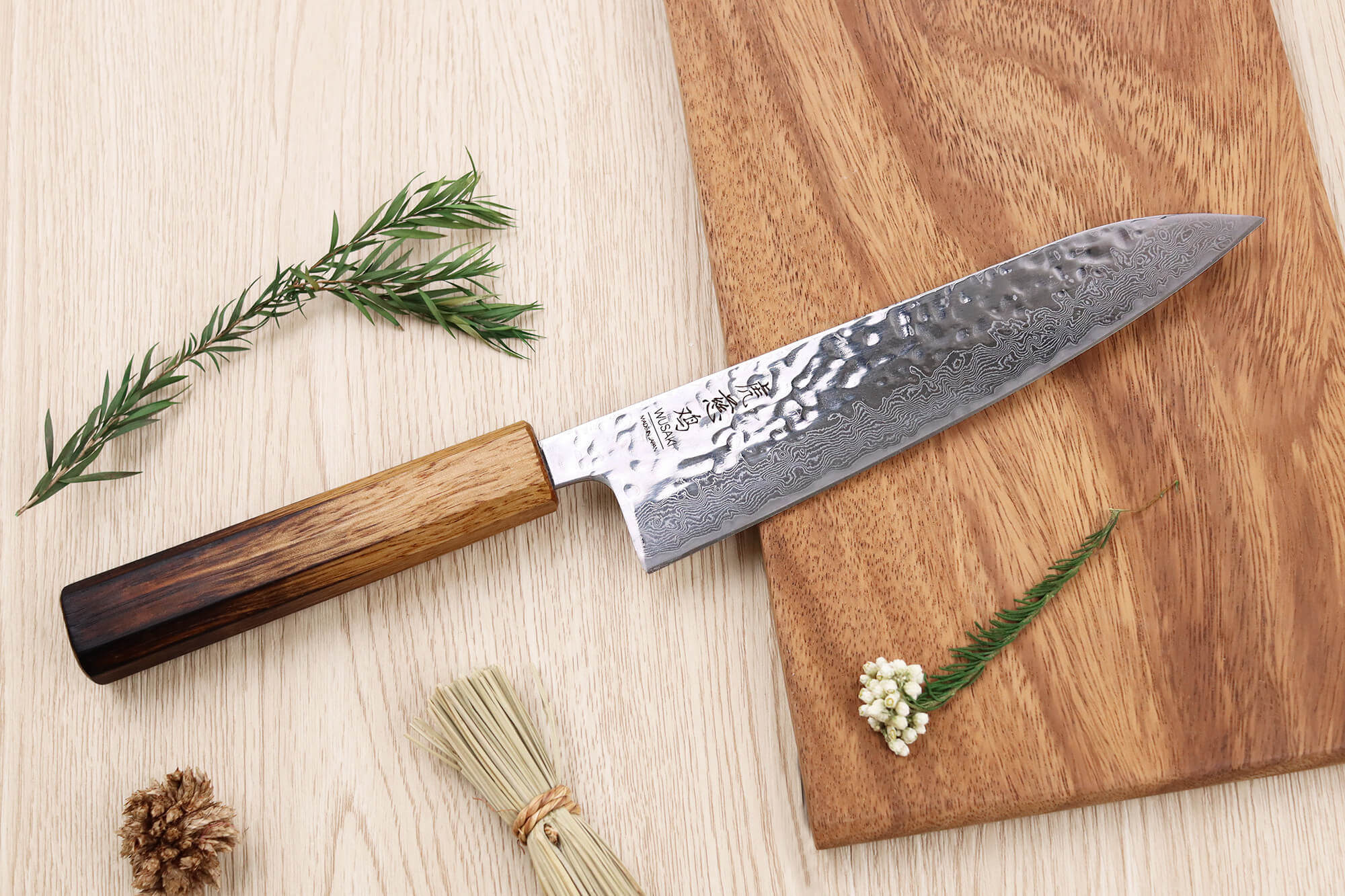 Couteau de chef japonais artisanal Wusaki Yaketa AUS10 damas 24cm