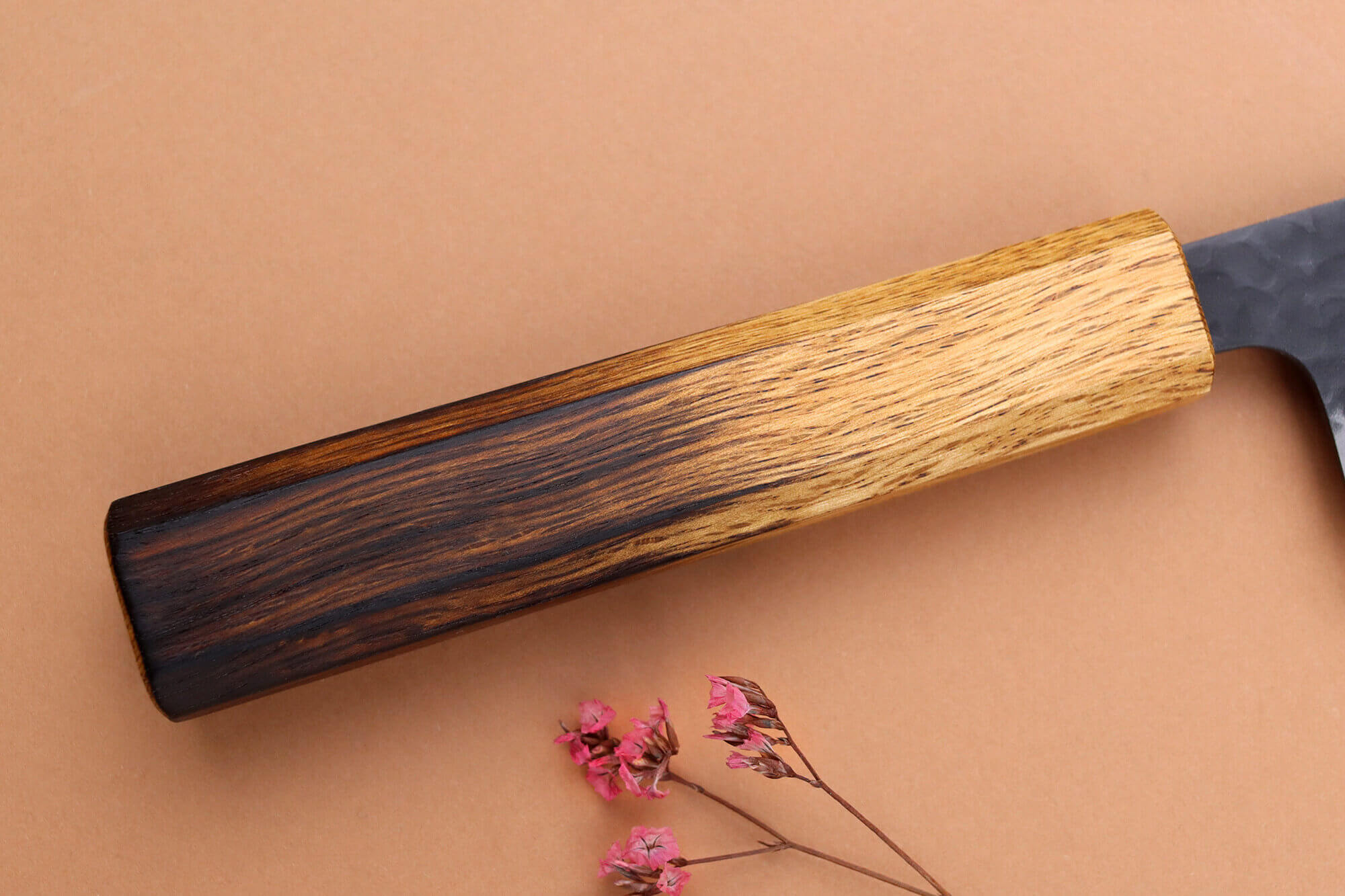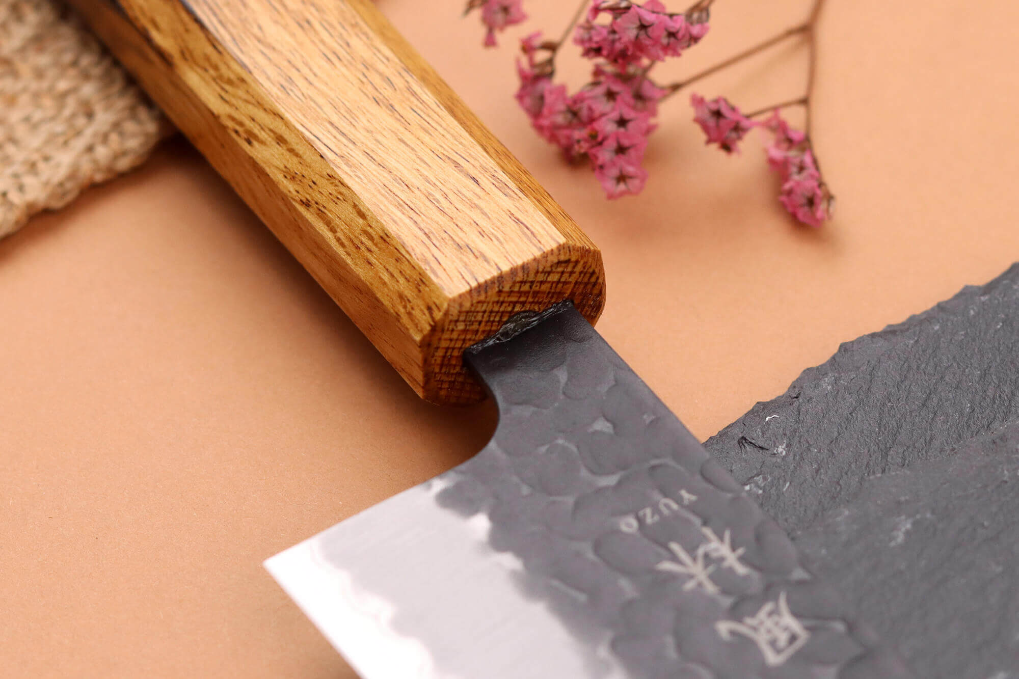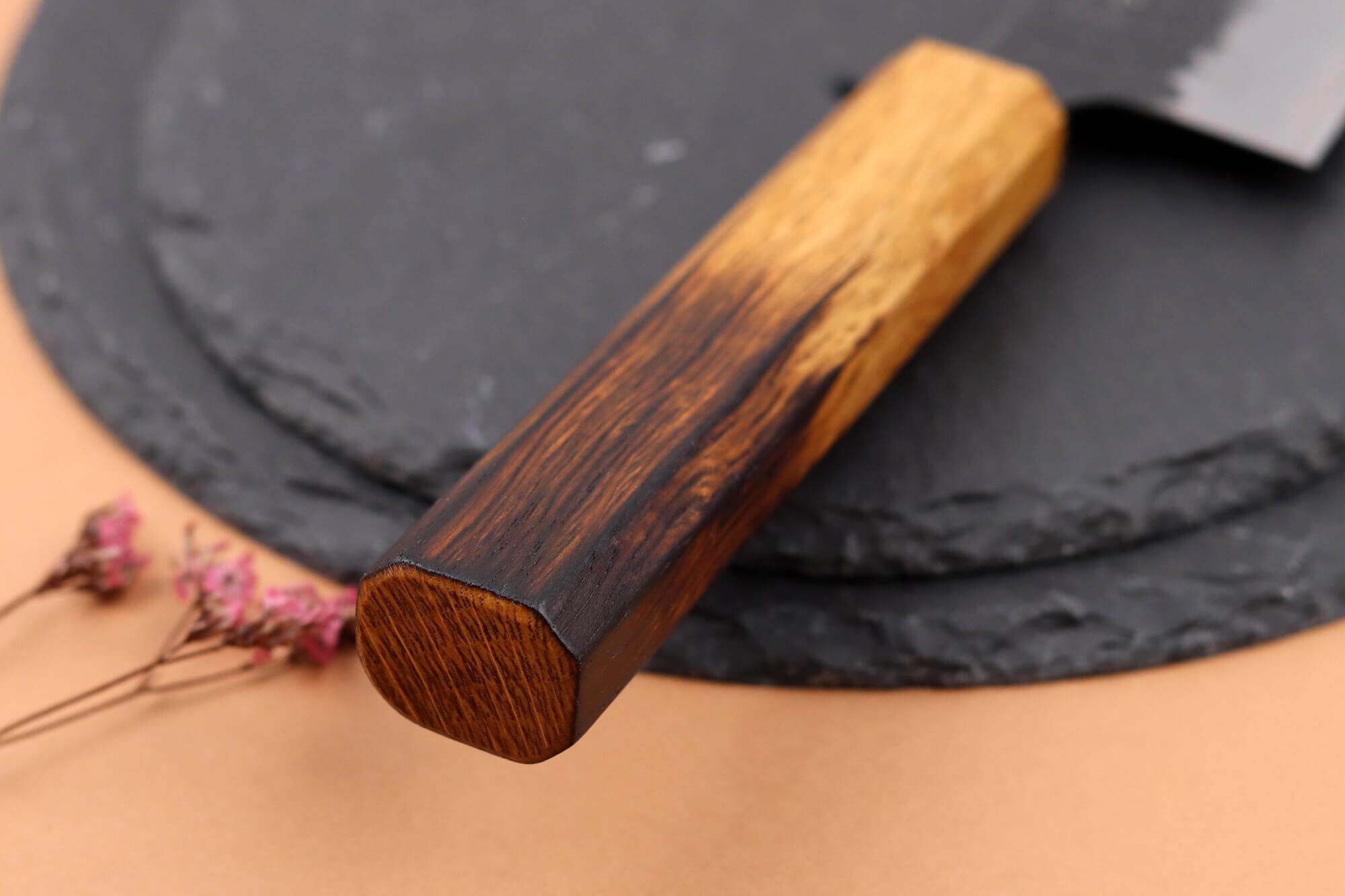 Le manche de ce couteau Yuzo est fabriqué en bois de chêne provenant de l’île de Kyûshû. Ce bois, très résistant aux chocs, aux vibrations et à l'humidité, résiste bien à la condensation, réduisant ainsi les risques de déformation !