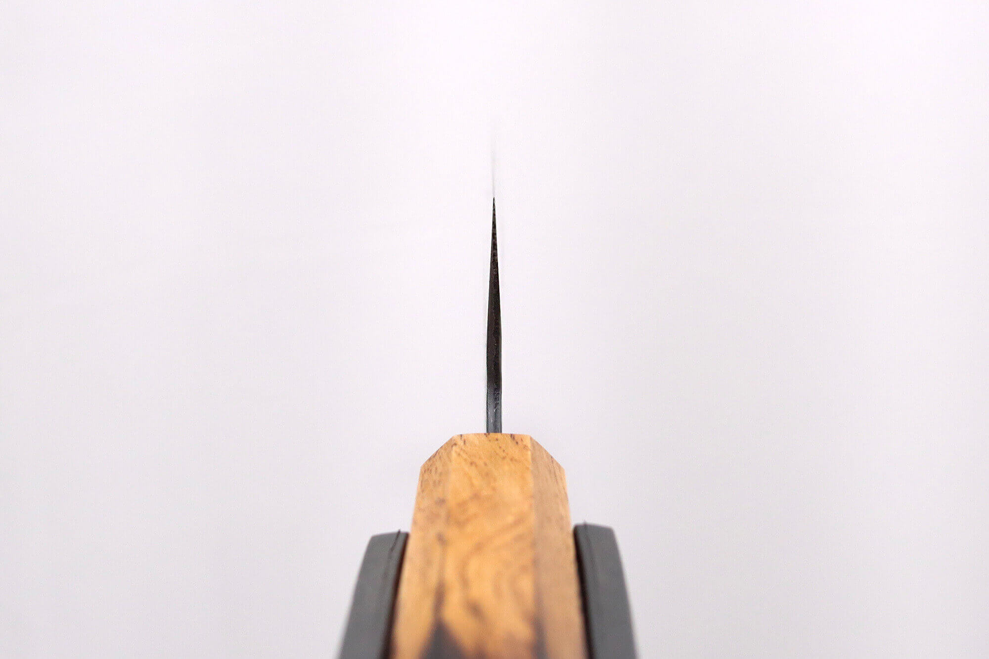 L’acier Aogami Super (AS) contient une forte teneur en carbone d'environ 1,5 %, ce qui augmente considérablement la dureté de l’alliage. Une dureté élevée assure une excellente longévité du tranchant : en effet, la dureté de cette lame atteint 65HRC sur l’échelle de Rockwell, garantissant une coupe durable et une performance de tranchant remarquable !