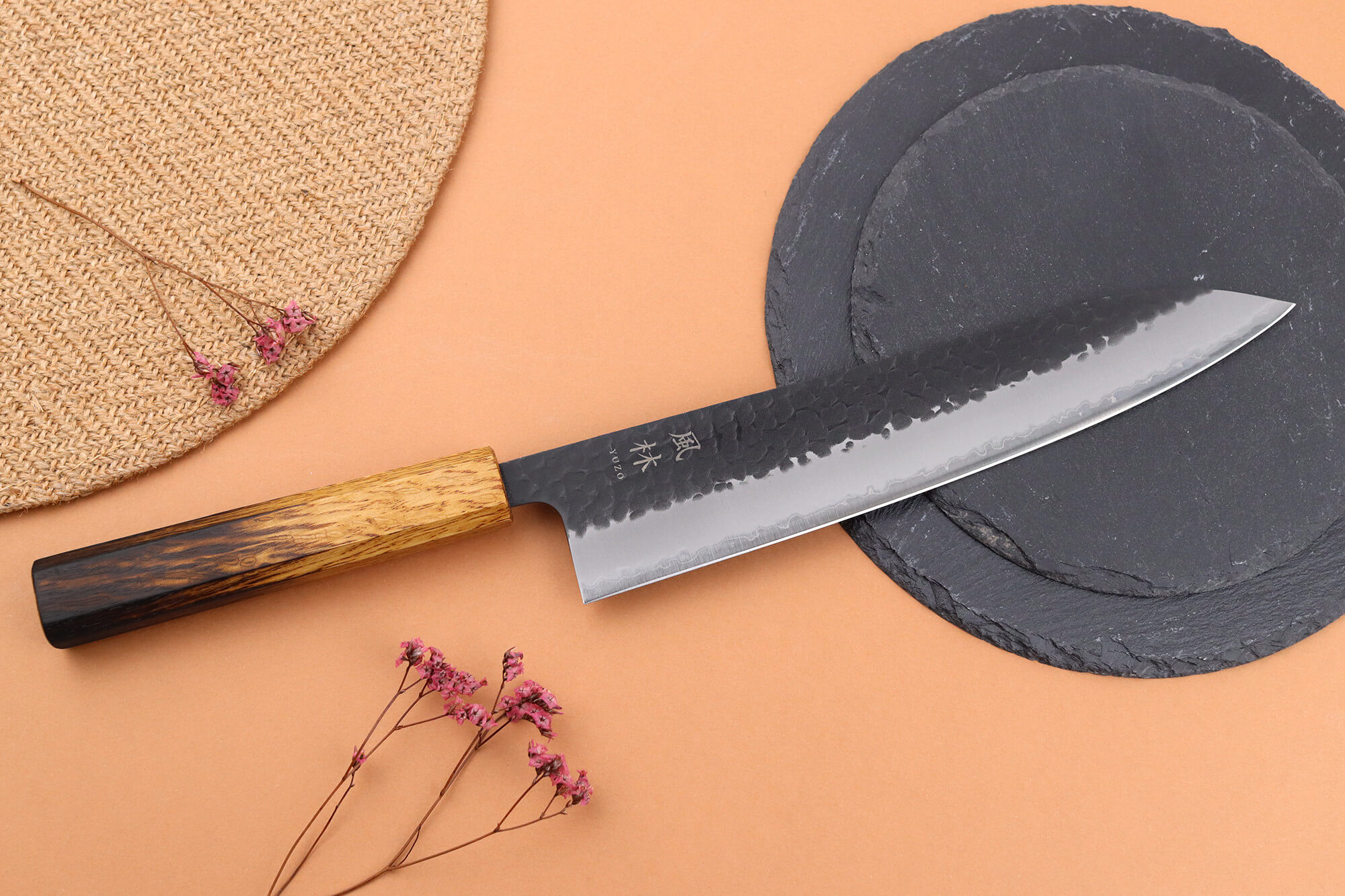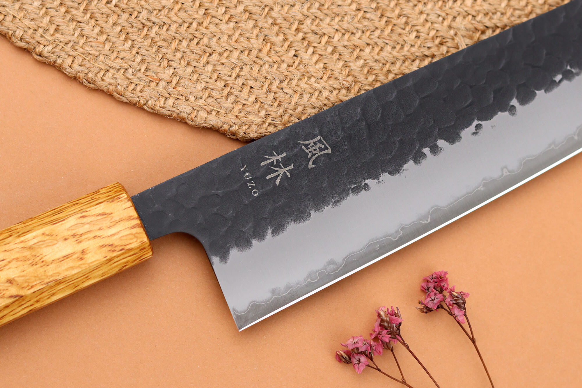 Le manche de ce couteau Yuzo est façonné dans du bois de chêne provenant de l’île de Kyûshû, une essence locale connue pour sa solidité. Ce bois dense résiste très bien à l’humidité, aux chocs et aux vibrations, ce qui le rend tout à fait adapté à un usage intensif en cuisine !