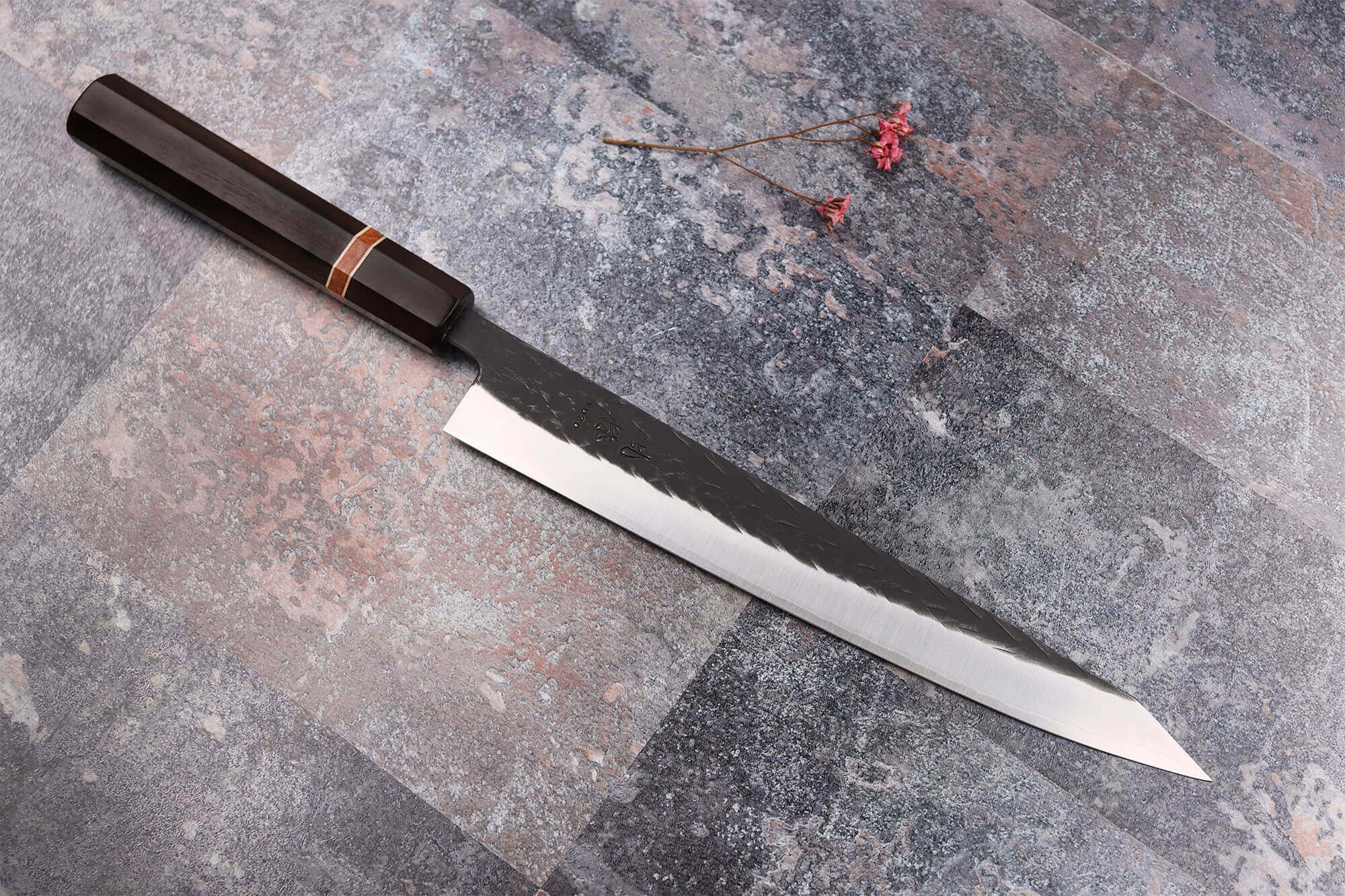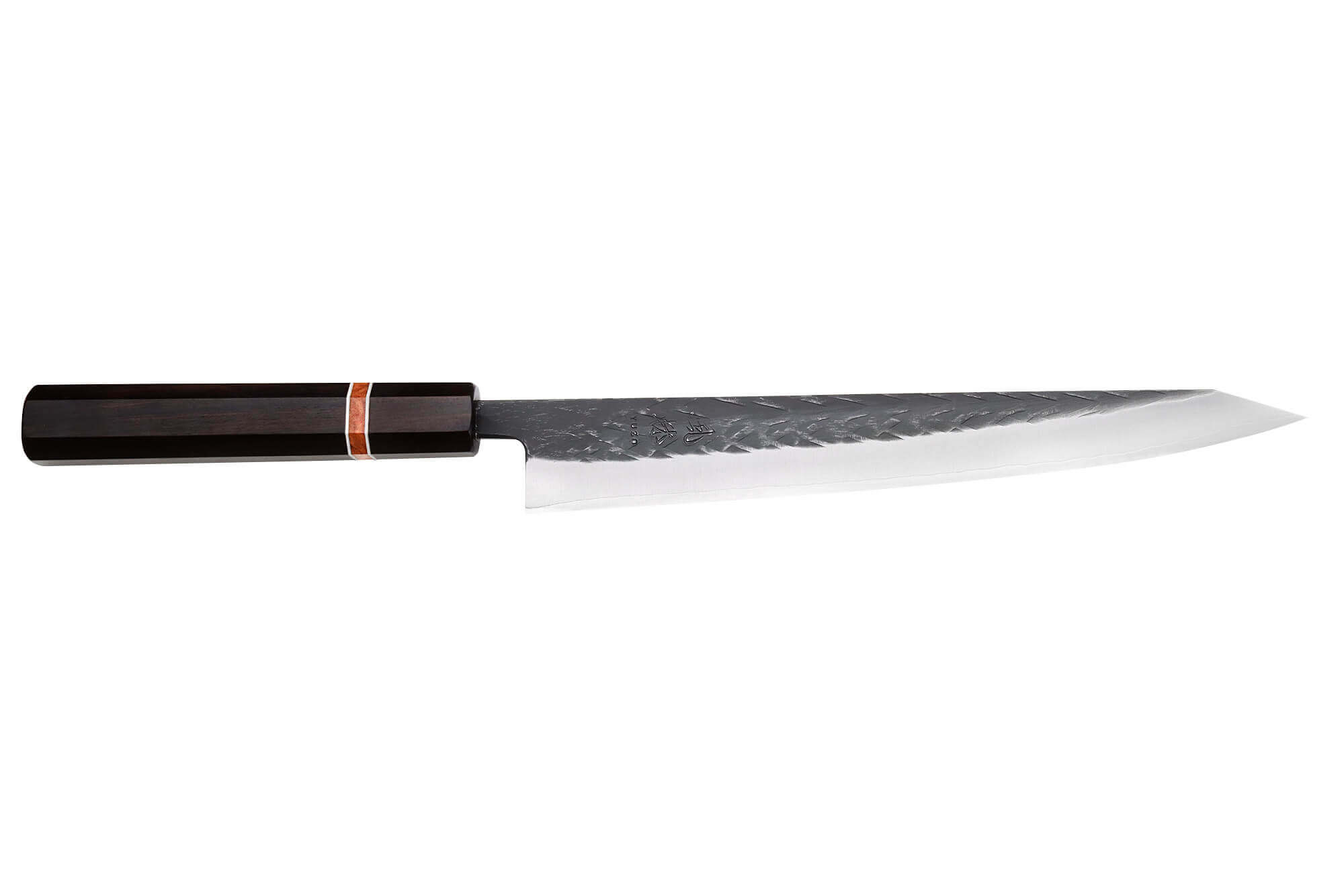 Le couteau sujihiki japonais Yuzo est forgé de façon artisanale par la célèbre coutellerie Tadafusa qui se trouve à Sanjo au Japon.