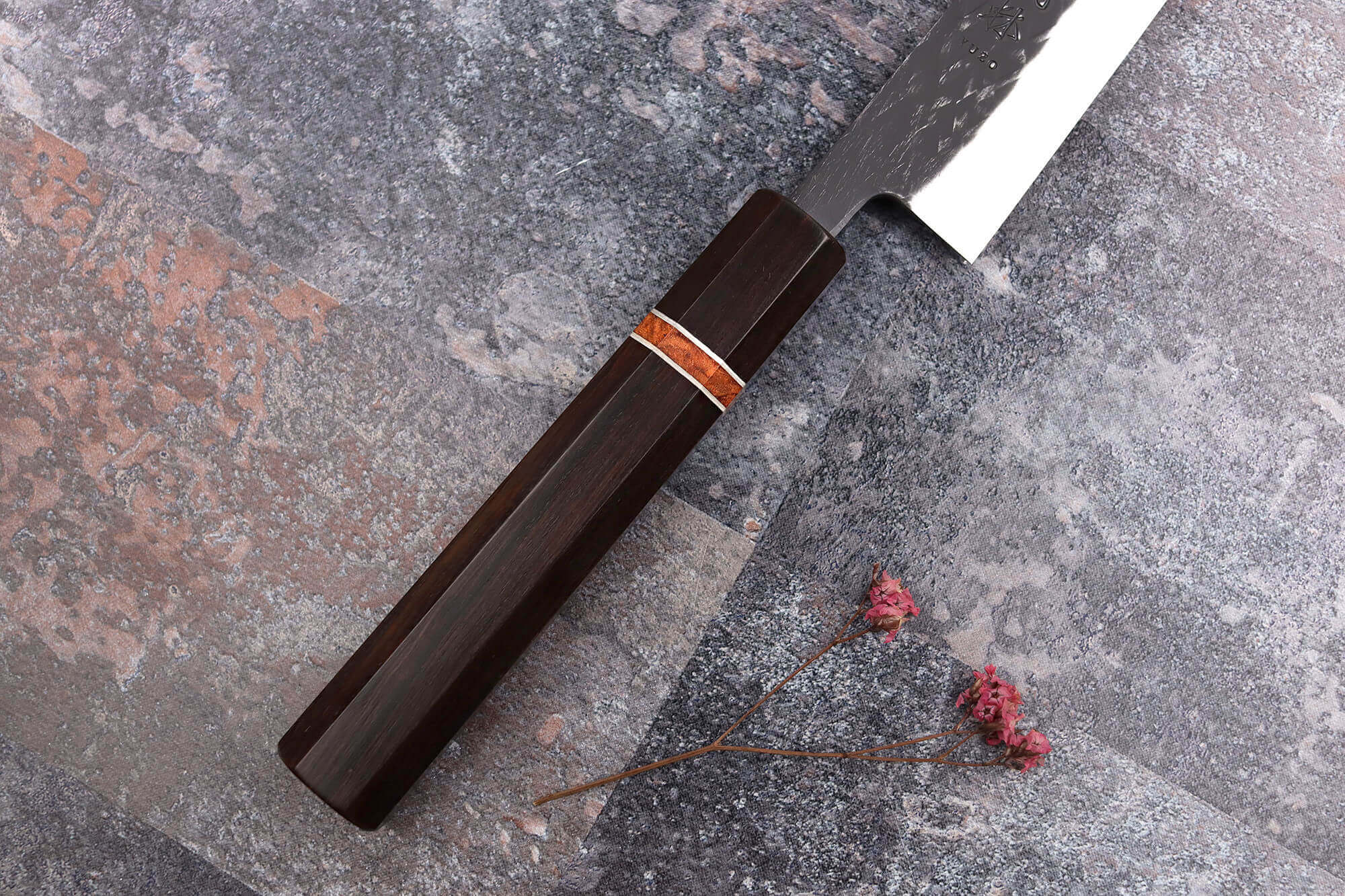 Couteau de chef 24cm japonais artisanal Yuzo Black SLD ébène et cognassier