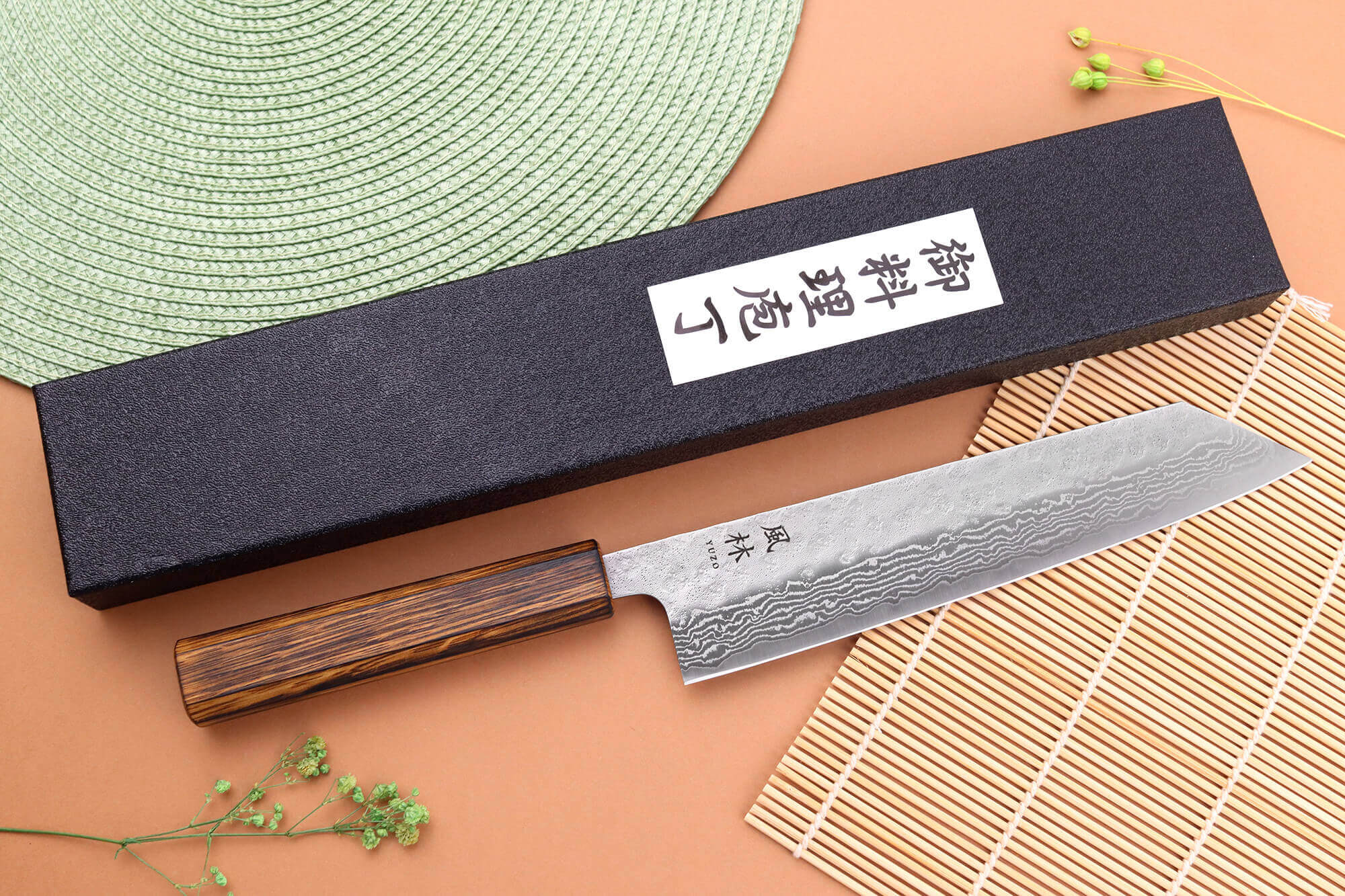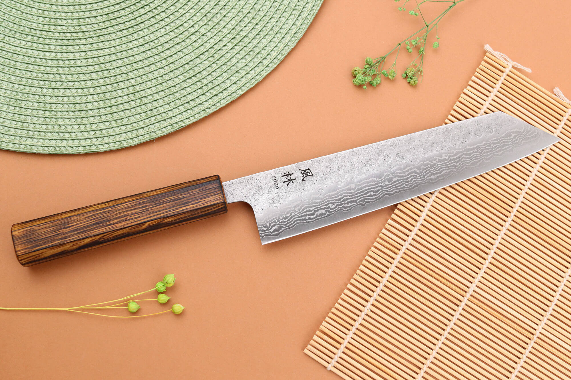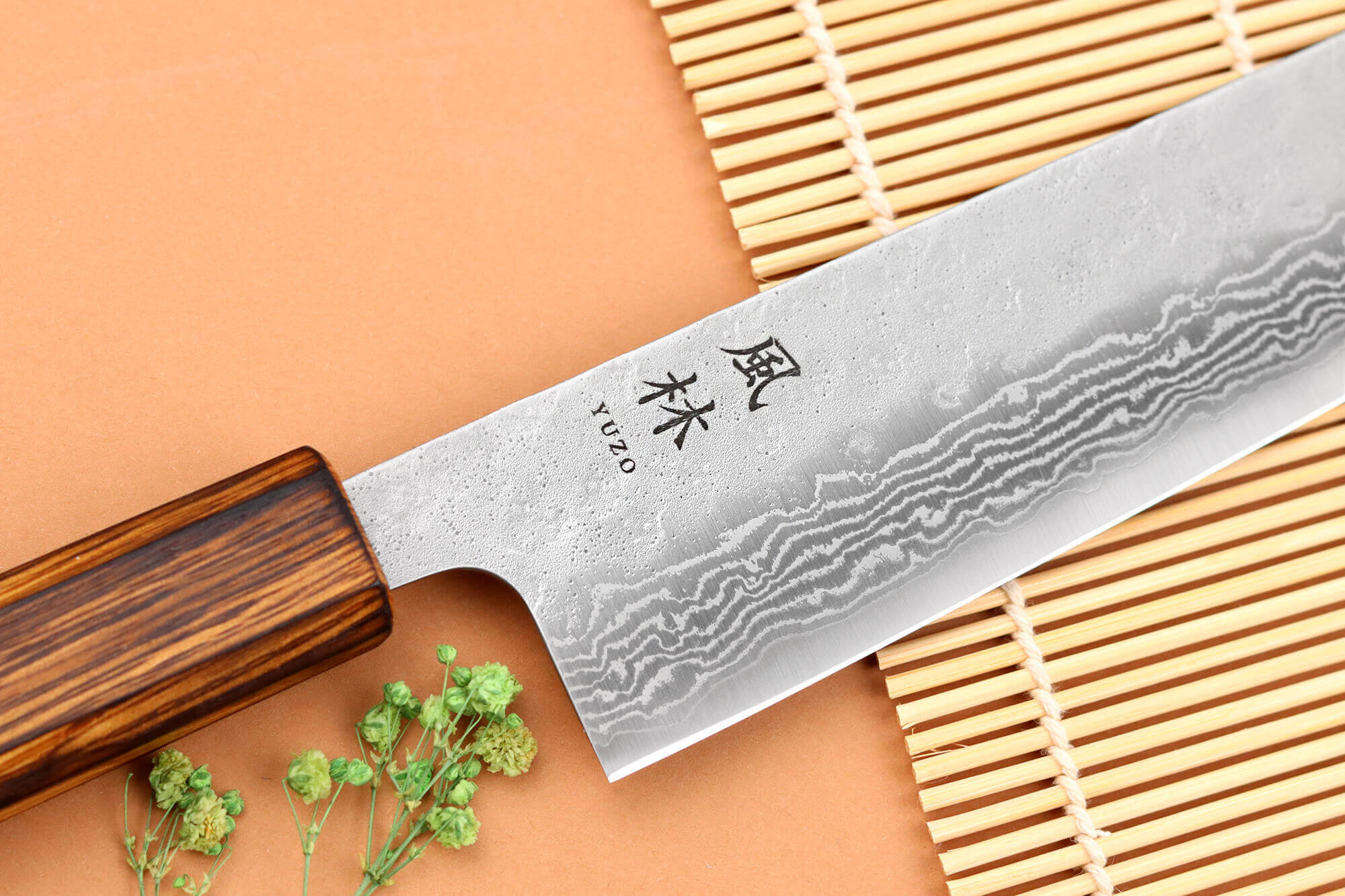 Couteau sujihiki 24cm japonais artisanal Yuzo Enju Damas 440C