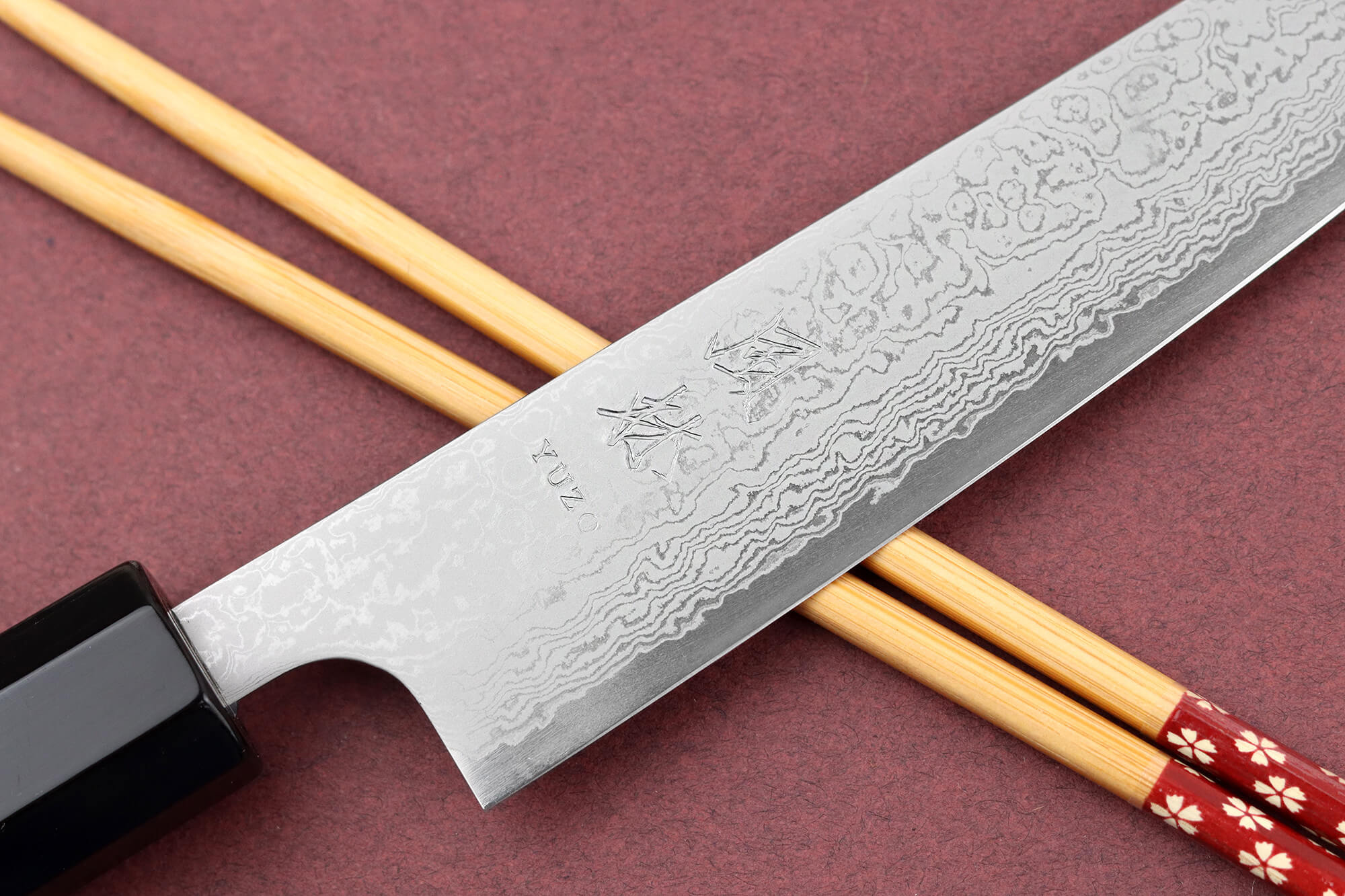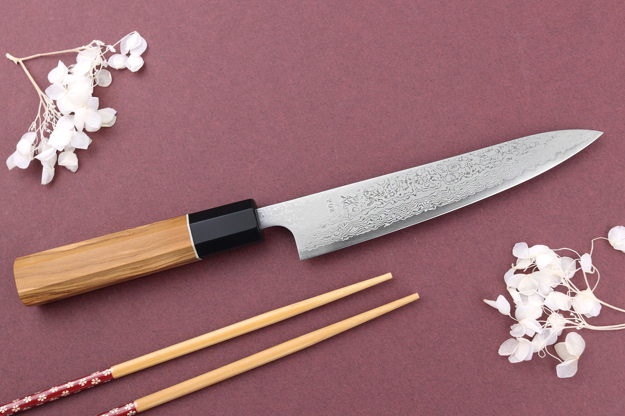 Couteau sujihiki kiritsuke 24cm japonais artisanal Yuzo Damas VG10
