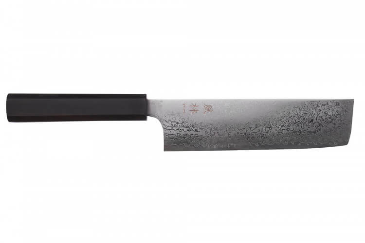 Ce couteau de cuisine japonais bénéficie d'une lame damassée : il s'agit d'une technique consistant à forger un noyau en acier rigide qui est, par la suite, entouré de plusieurs couches d'acier plus souples. Cela permet d'équilibrer la dureté de votre lame tout en protégeant le noyau en son centre.