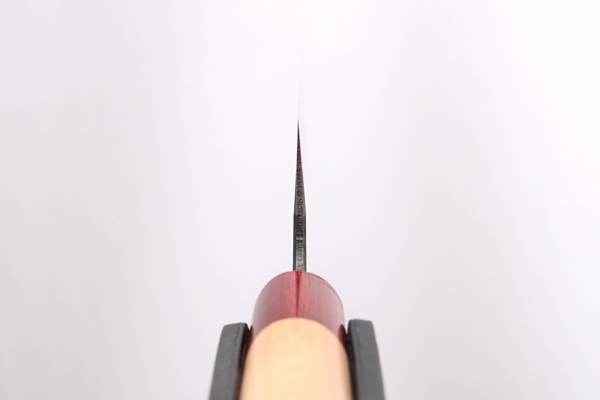 Avec une teneur élevée en carbone atteignant 1,2 % – bien supérieure à la moyenne des couteaux occidentaux, qui est d’environ 0,5 % – cet alliage offre une rigidité accrue. Cela permet d’obtenir un aiguisage particulièrement précis. Ce couteau artisanal japonais présente une dureté de 62HRC sur l’échelle de Rockwell, assurant une excellente rétention du tranchant et des performances de coupe élevées.