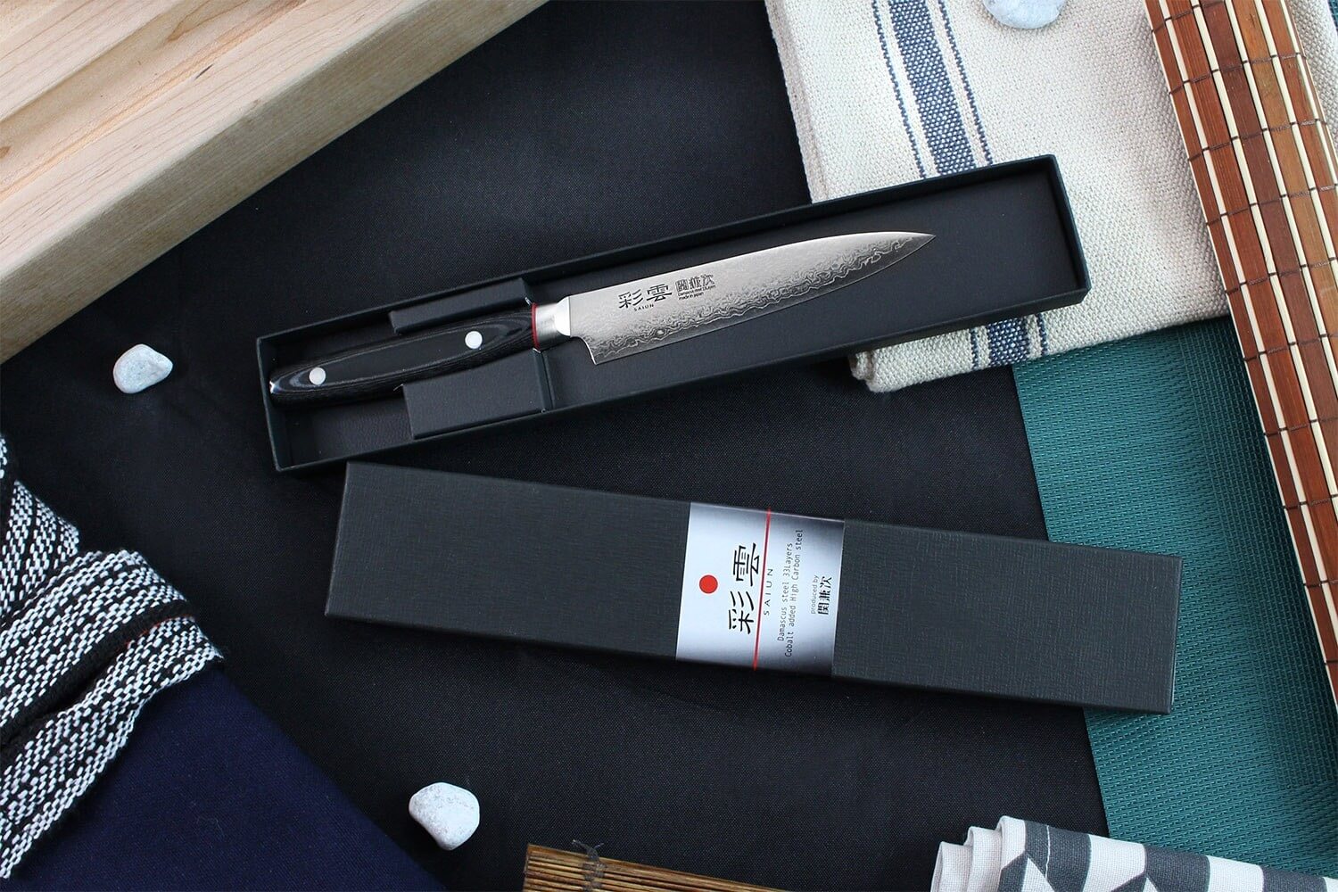 Les couteaux de cuisine Kanetsugu Saiun sont pensés pour les chefs et les amateurs, afin de s'adapter à tous les cuisiniers. Ils sont agréables à utiliser, performants, et ils tiennent sur la durée. Les procédés de fabrication tout comme les matériaux utilisés pour créer un couteau de cette série vous permettent de les choisir sans hésiter.
