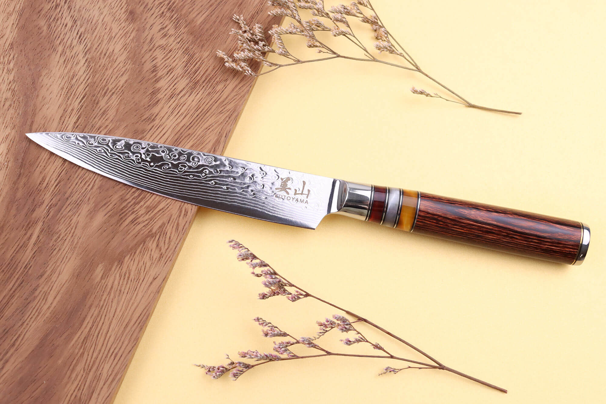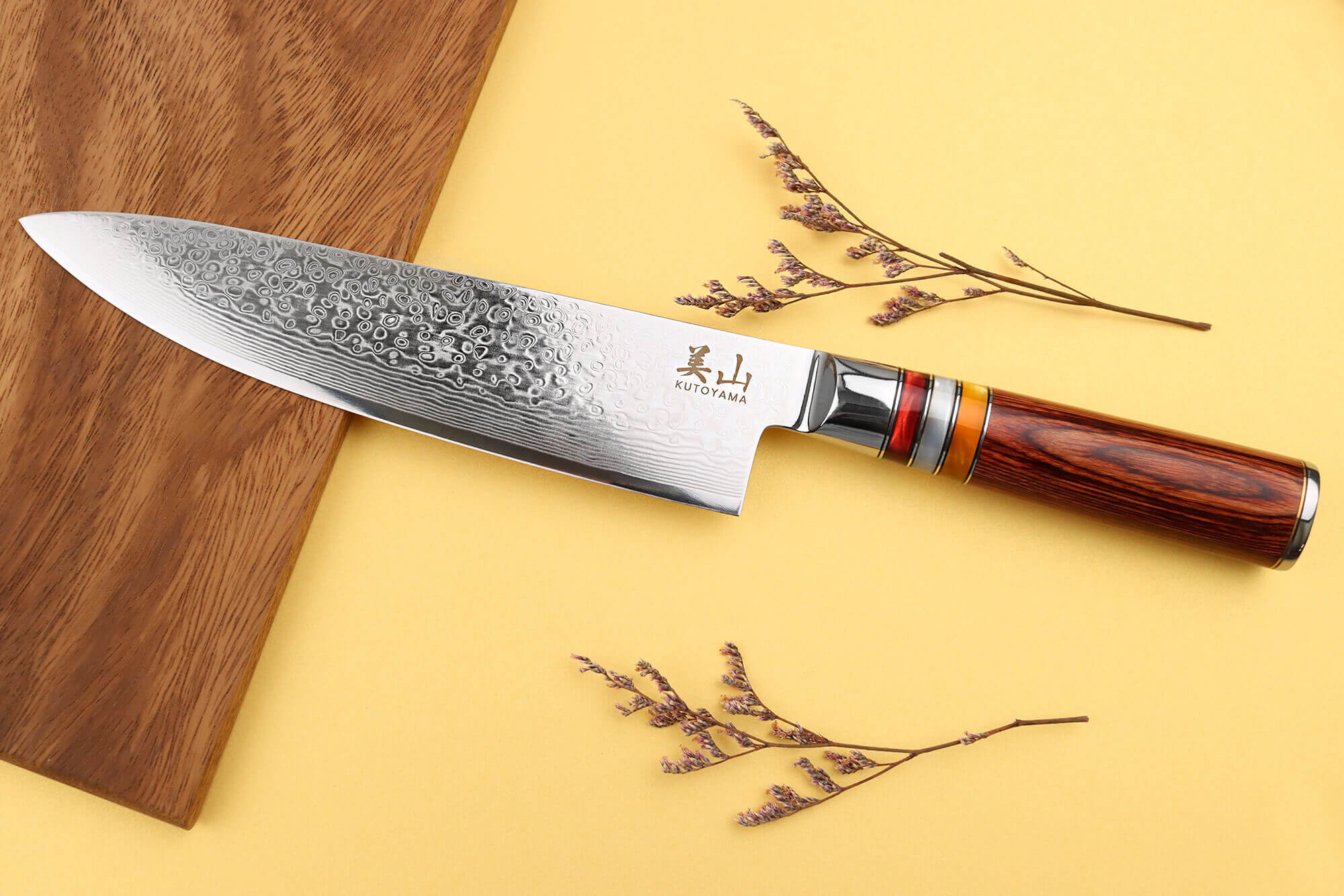 Couteau kiritsuke 20cm Kutoyama damas manche fibre de carbone