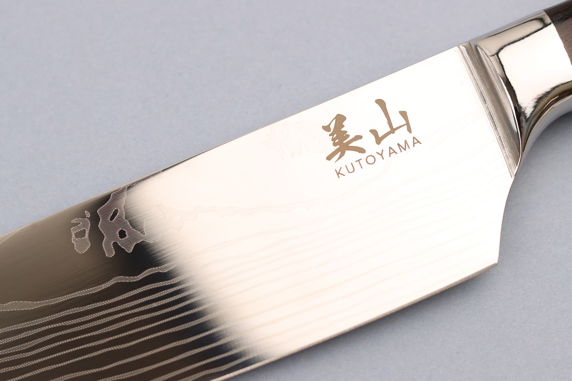 La lame a été polie pour avoir un effet miroir, et elle présente une impression damassée.