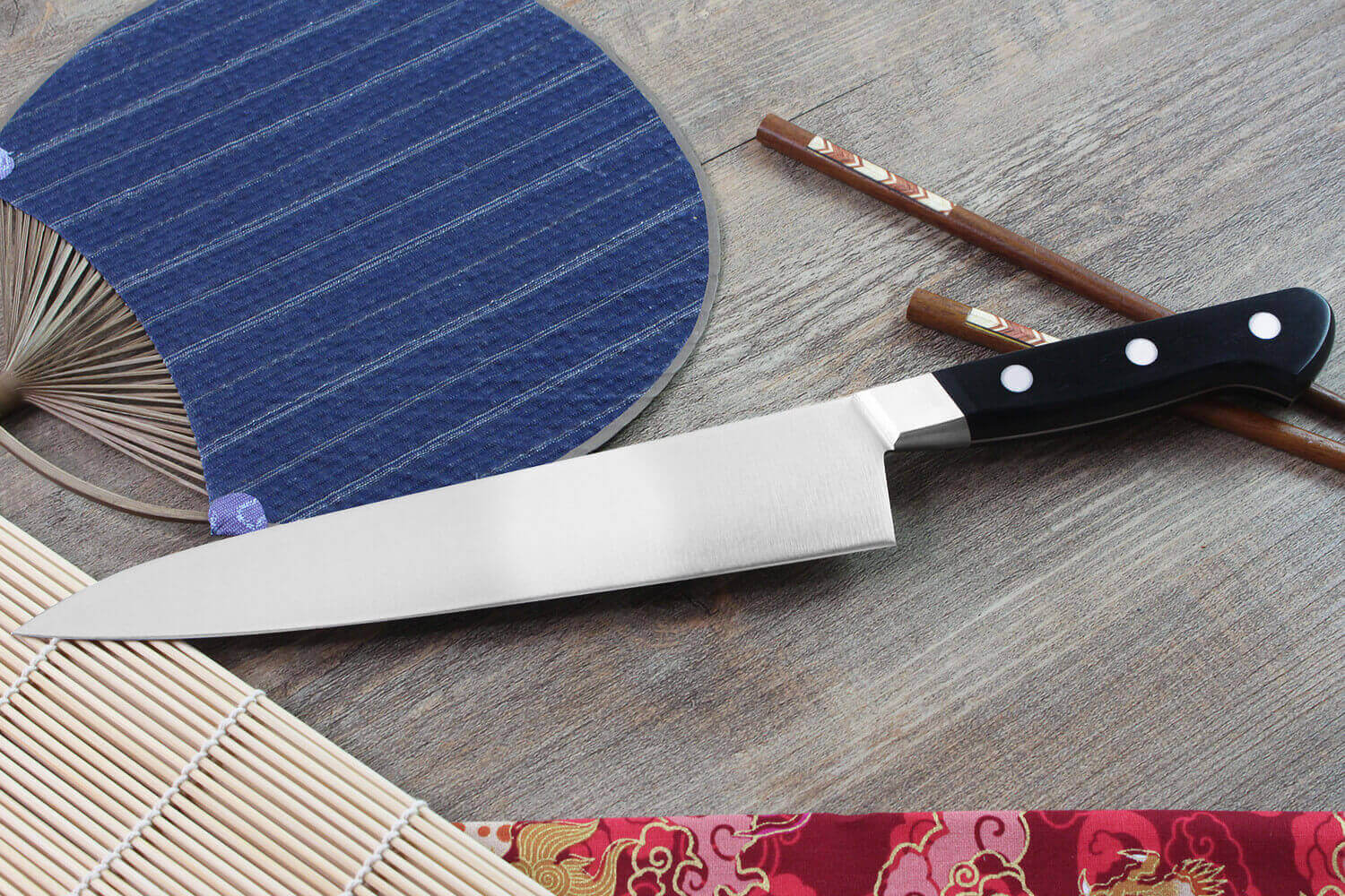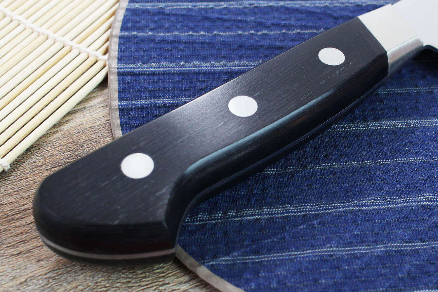 Le manche s'adapte parfaitement à l'usage occidental grâce à sa forme ergonomique (d'où son usage dans plusieurs pays). Fabriqué en bois de pakka noir, résistant et léger, il est très agréable en main. Le Pakkawood est un matériau antibactérien très utilisé en cuisine car résistant aux variations de température et à l'humidité.