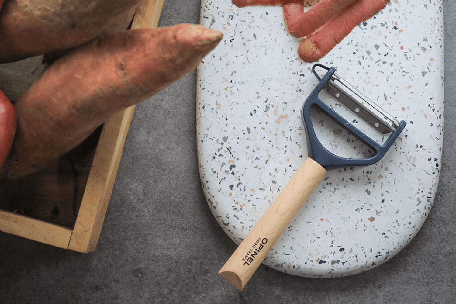 Réaliser des juliennes et éplucher vos légumes n'a jamais été aussi simple grâce à l'éplucheur T-Duo en bois bleu. Opinel, la célèbre marque française, nous propose cet ustensile polyvalent. Il promet une expérience culinaire sans effort. Disponible sur Couteauxduchef.com, il est l'outil indispensable pour transformer votre cuisine traditionnelle en une véritable partie de plaisir.