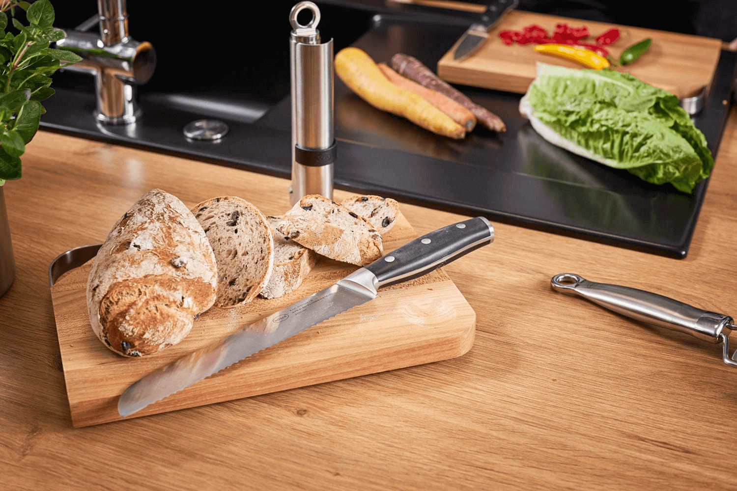Nouveau client ?Du pain parfaitement découpé avec le couteau à pain Rosle !