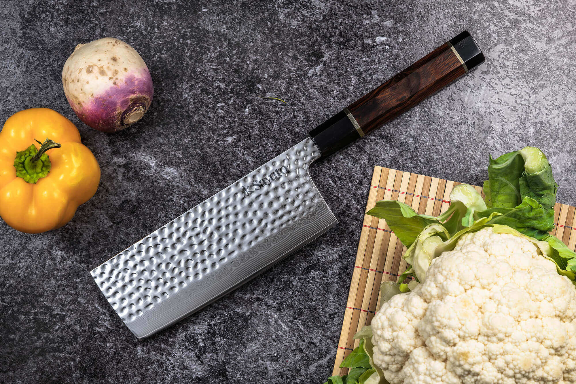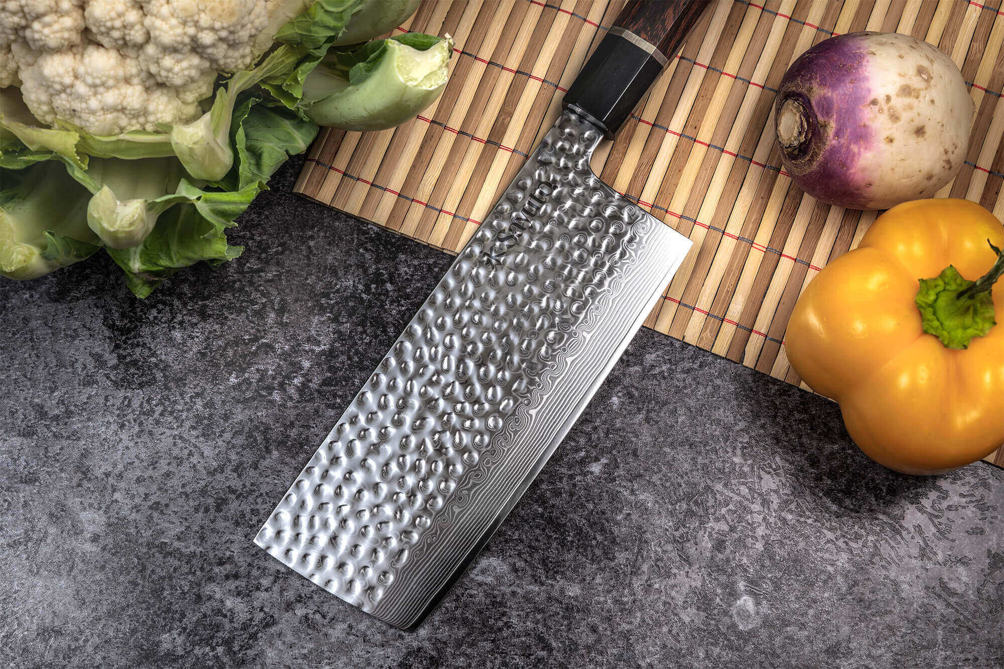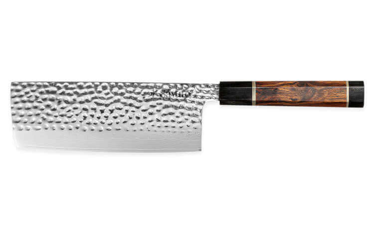 Le couteau nakiri Sayuto Desert Damas 17cm est fait pour tailler vos légumes avec précision et rapidité. Cette forme particulière nous vient tout droit du Japon. Notez que, malgré la hauteur de la lame et son aspect imposant, il ne faut pas l'utiliser pour s'occuper de la viande ou des os !