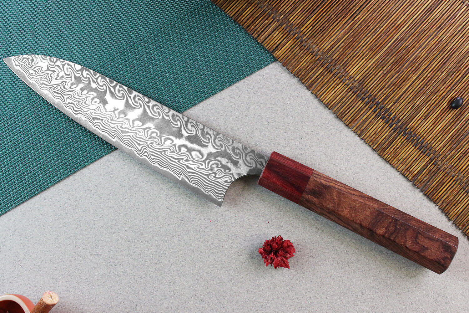 Couteau santoku japonais artisanal Yoshimi Kato 16.5cm VG10 Nickel Damascus