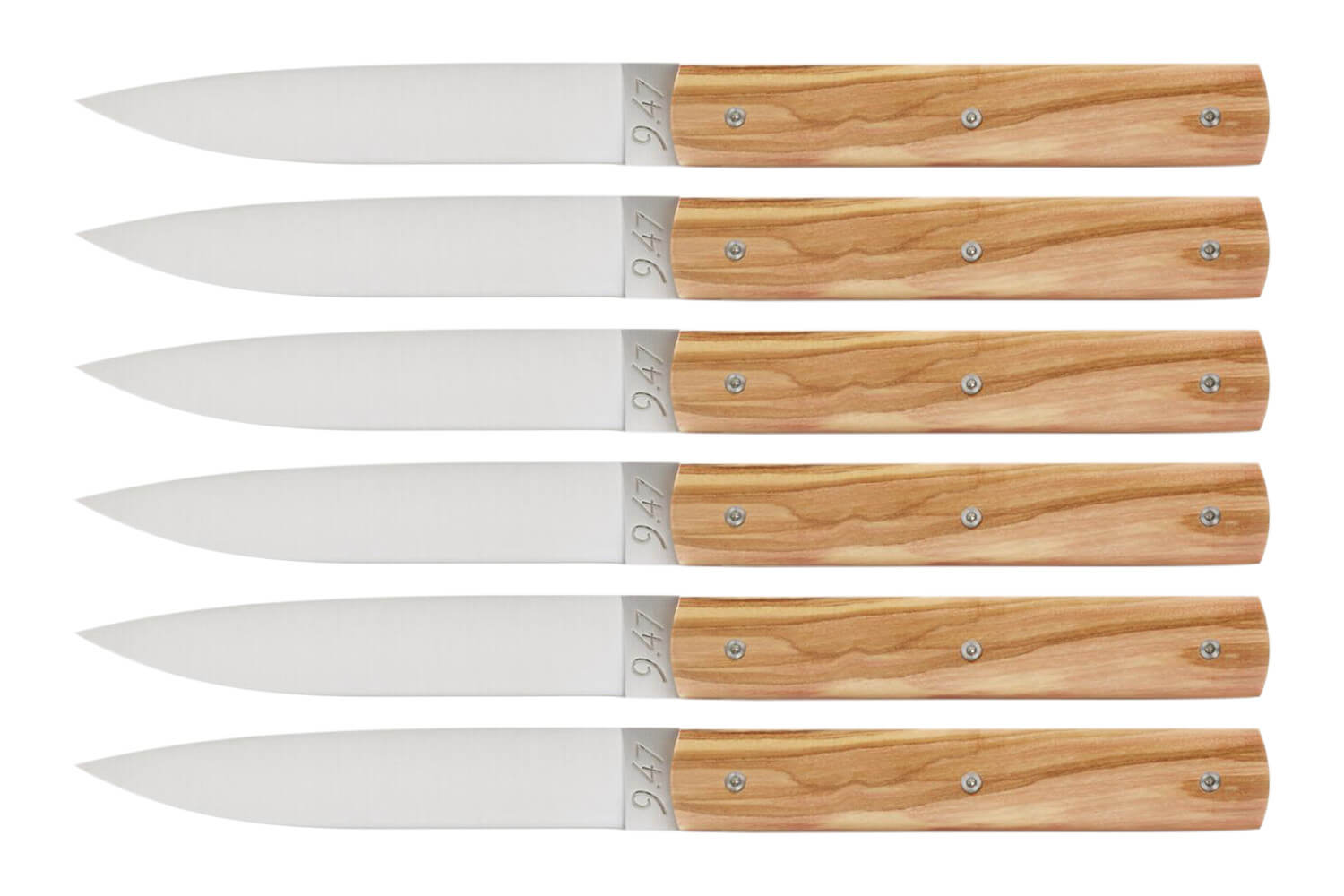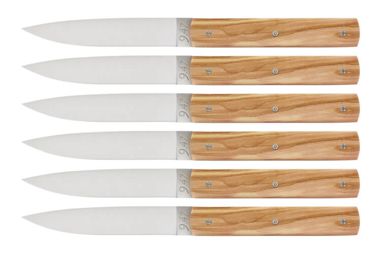 Comme tout beau couteau de table, évitez le lave-vaisselle. Lavez-les à la main avec soin, puis séchez immédiatement. Un peu d’huile minérale de temps à autre préservera l’éclat du bois d’olivier.