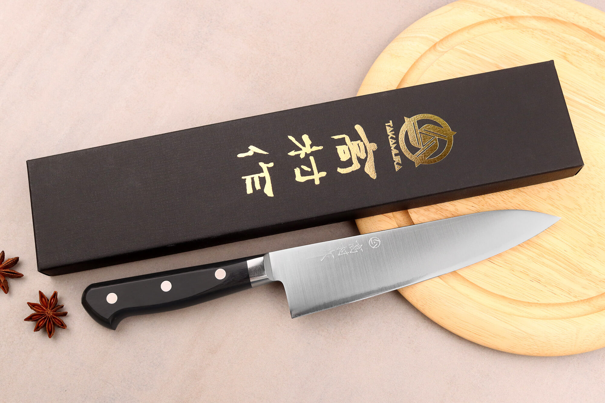 Depuis plusieurs décennies, Takamura perfectionne la fabrication de couteaux en acier inoxydable, cherchant à égaler la performance des lames en acier au carbone qui font la fierté du Japon. Aujourd’hui, cette mission est accomplie avec brio, et vous pouvez en faire l’expérience en adoptant un couteau Takamura, fruit du travail de la troisième génération d’artisans de la famille.