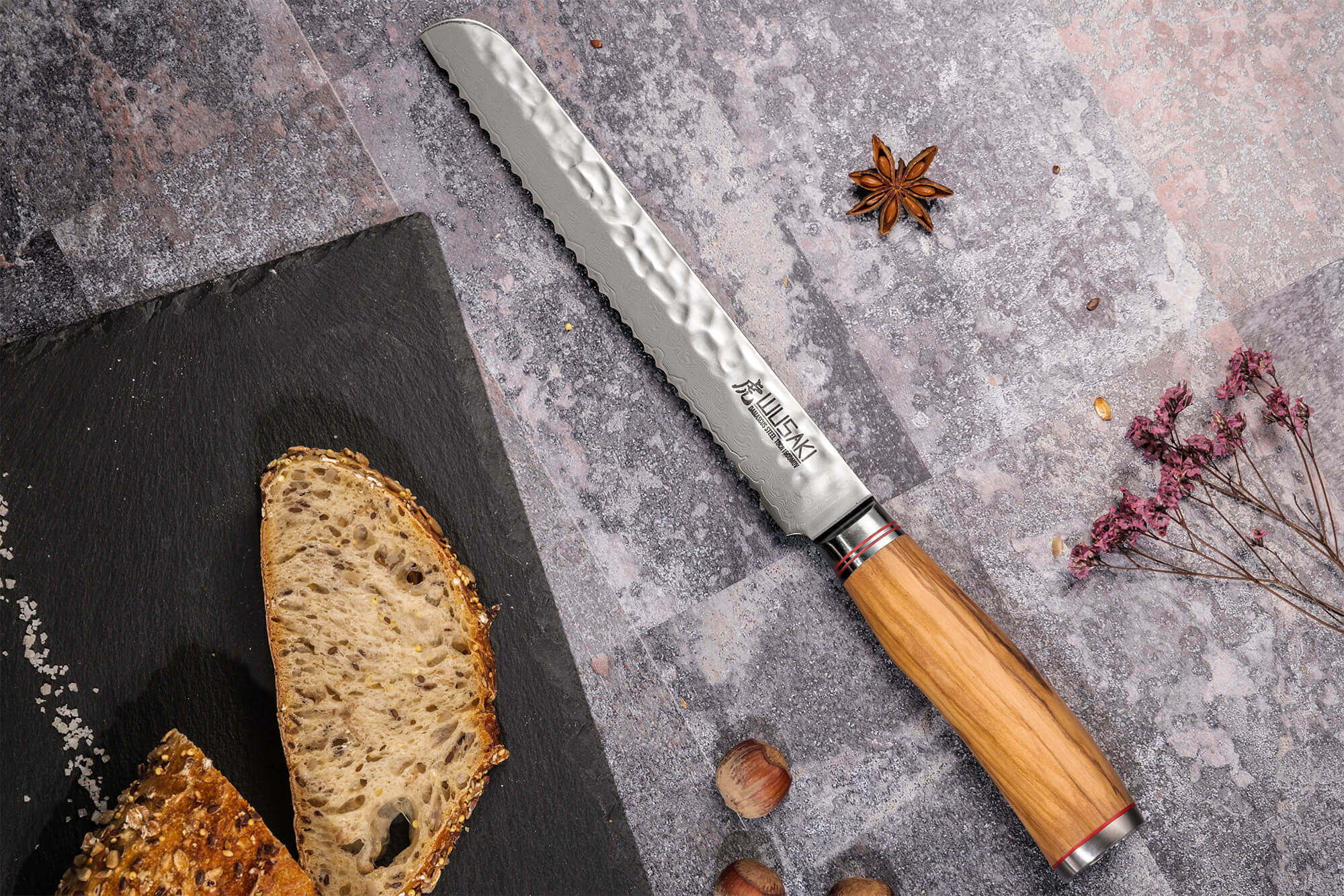 Les couteaux Wusaki sont fabriqués par une petite structure située au Nord de la ville de Canton, la capitale de la province de Guangdong, en Chine Occidentale. Cette province est historiquement connue pour son savoir-faire dans la production de couteaux. L’expertise Wusaki est entièrement régie par les standards de fabrication français établis pour les professionnels du secteur. La gamme Wusaki Damas 10Cr met à votre disposition une sélection de couteaux de cuisine uniques, pouvant satisfaire professionnels et particuliers. Ce couteau Wusaki Damas 10Cr réunit les meilleures qualités que tout bon couteau de cuisine se doit de posséder : efficacité, fonctionnalité, durabilité et design. Son style raffiné saute tout de suite aux yeux grâce à son originalité, son élégance, et ses impeccables finitions.