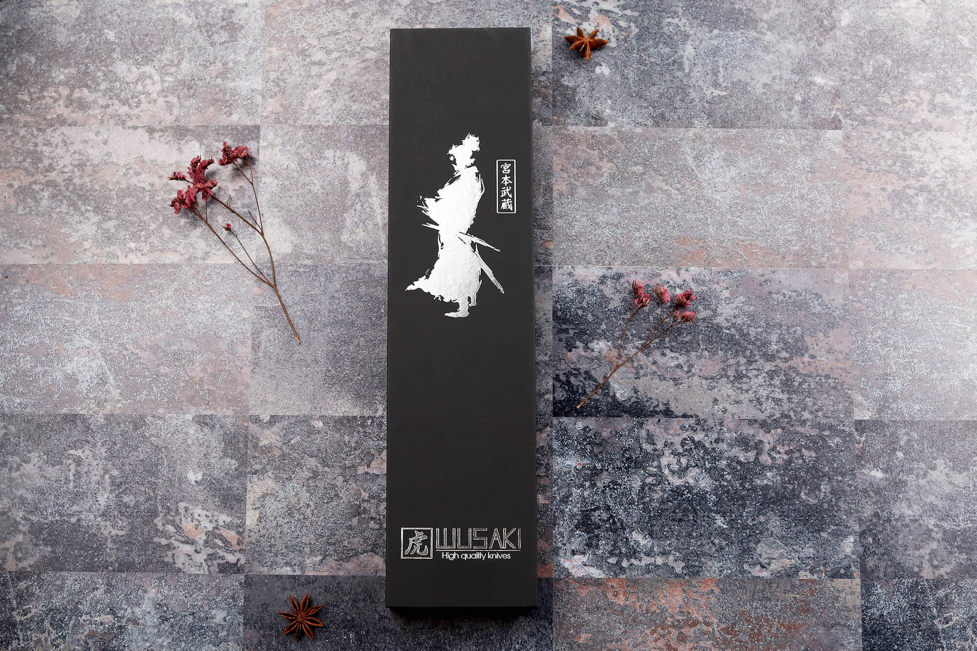 Chaque couteau Wusaki est livré dans un coffret de qualité qui le protège des chocs. La boîte noire est très élégante et vous permet de l'offrir facilement à quelqu'un.