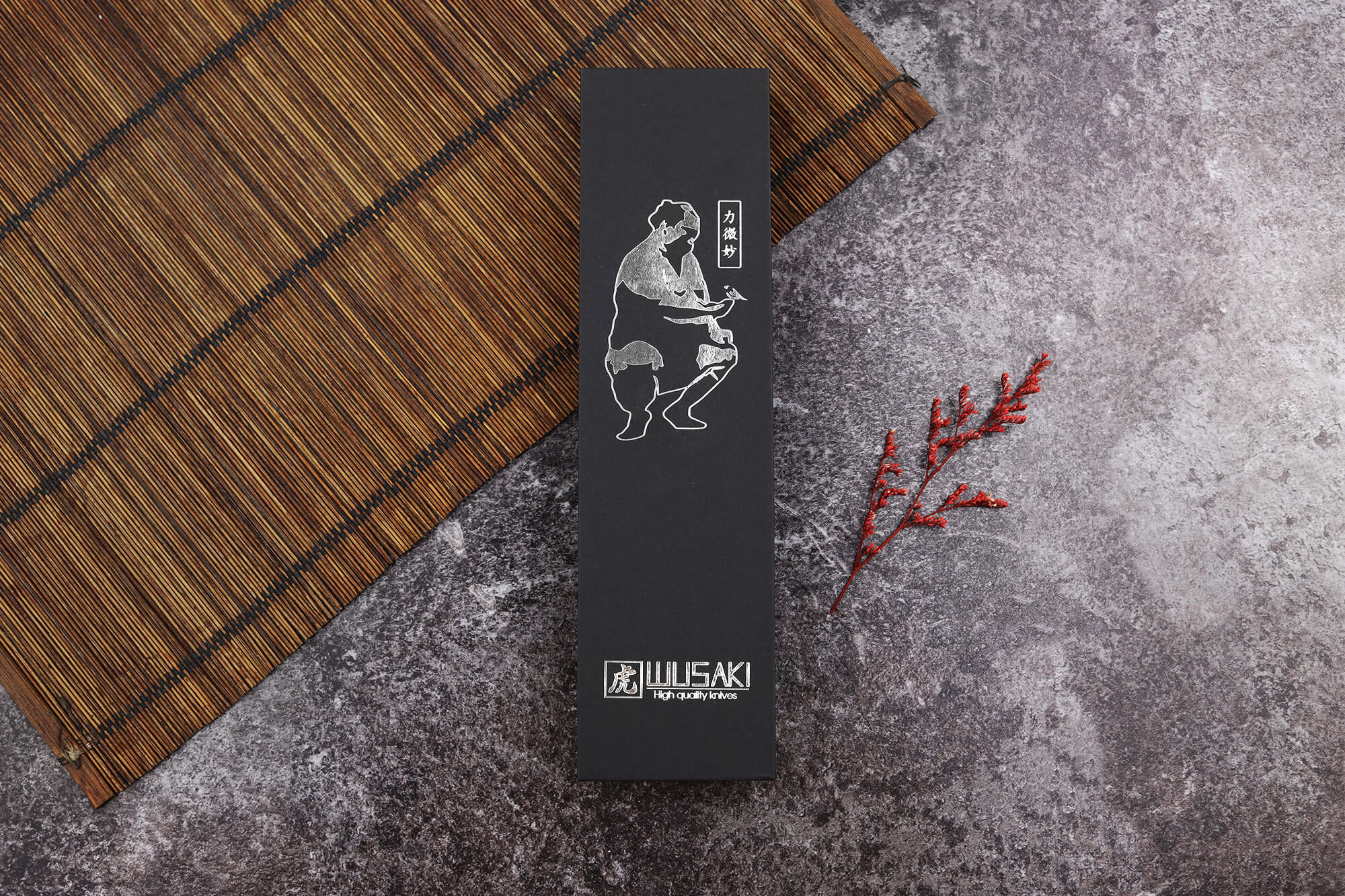 Chaque couteau wusaki fujiko est fourni dans un coffret haut de gamme qui le protège des chocs. La boîte est décorée et élégante : elle vous permet de l'offrir facilement à un amateur de couteaux ou bien de le ranger à l'intérieur quand vous ne l'utilisez pas.