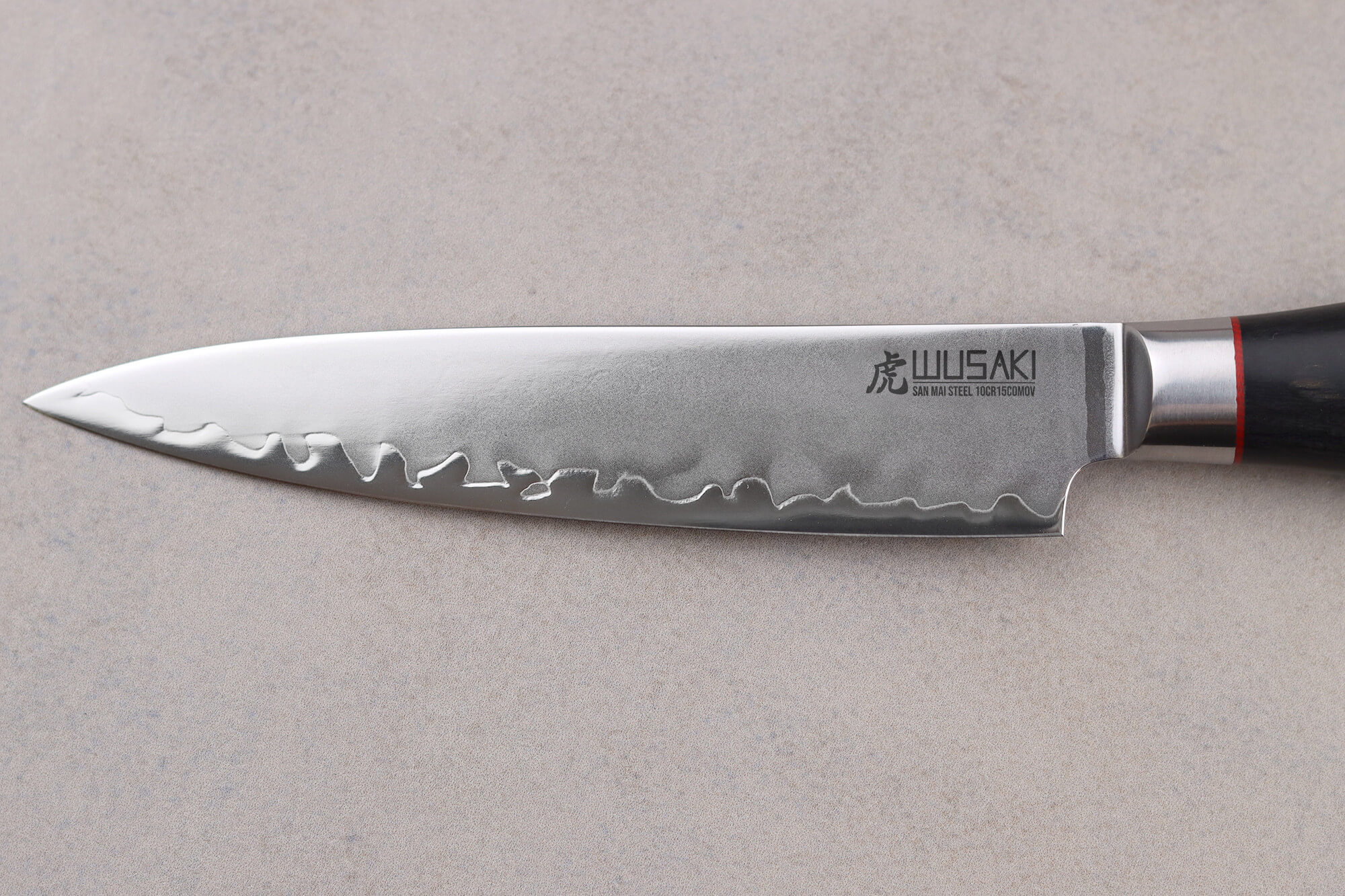 Wusaki a choisi l'acier inoxydable 10Cr15CoMoV pour réaliser le cœur de la structure San Maï. Ayant un taux de carbone d'environ 1,05%, il est bien au-dessus de la moyenne des couteaux occidentaux se situant aux alentours de 0,5%. Ce taux de carbone élevé permet à l'acier d'avoir une dureté de 60 HRC sur l'échelle de Rockwell, et donc un tranchant efficace malgré les nombreuses découpes.