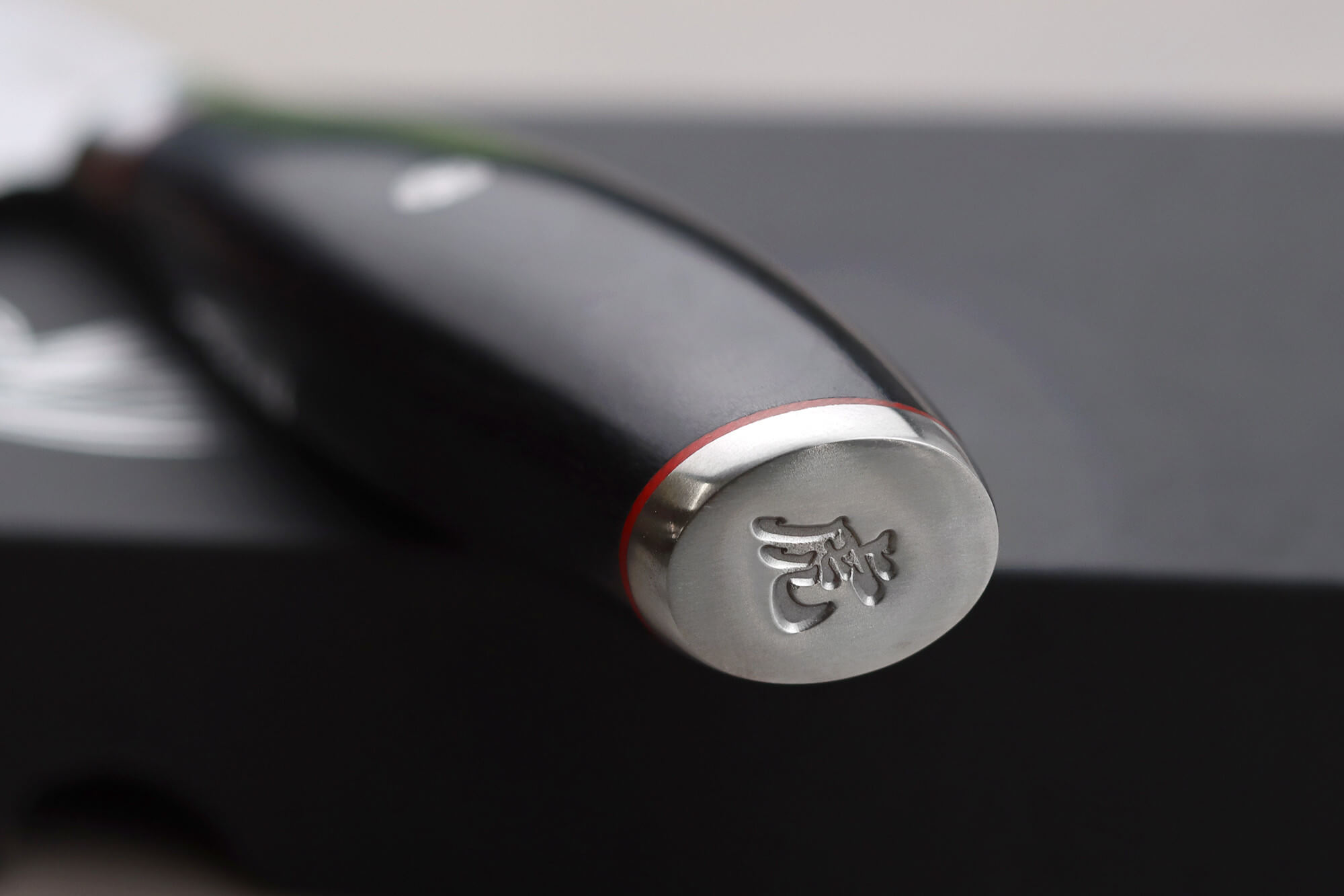 Culot en inox et biseauté au kanji Tigre gravé : excellent équilibre