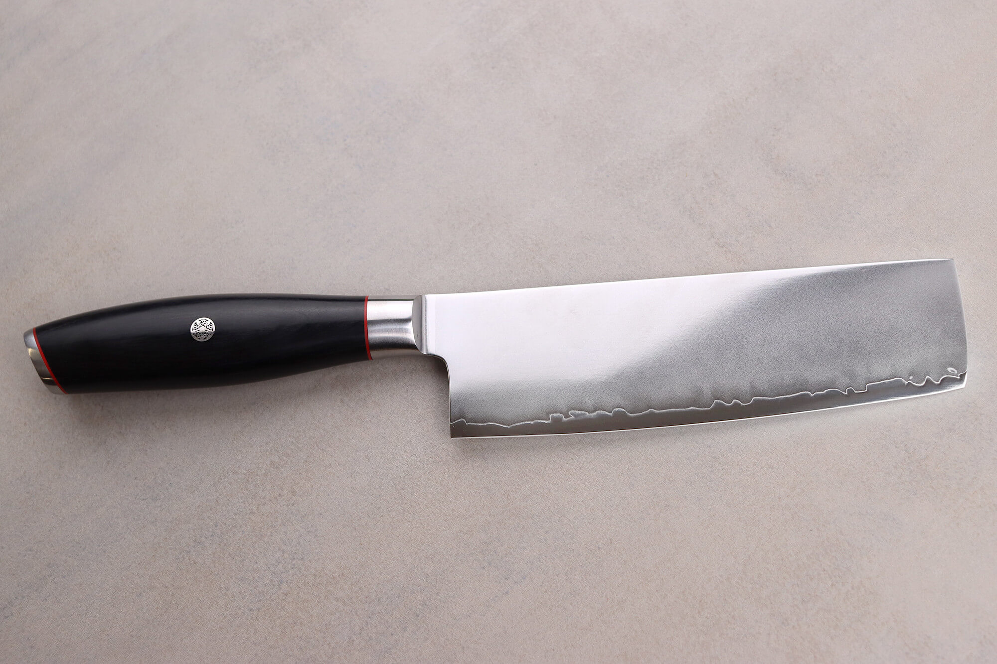 Tous les détails sont superbes : le San Maï, le rivet mosaïque, et l'aiguisage. Ils sont adaptés aux cuisiniers qui aiment sentir le poids du couteau en main. La forme du manche rend la prise en main ergonomique !