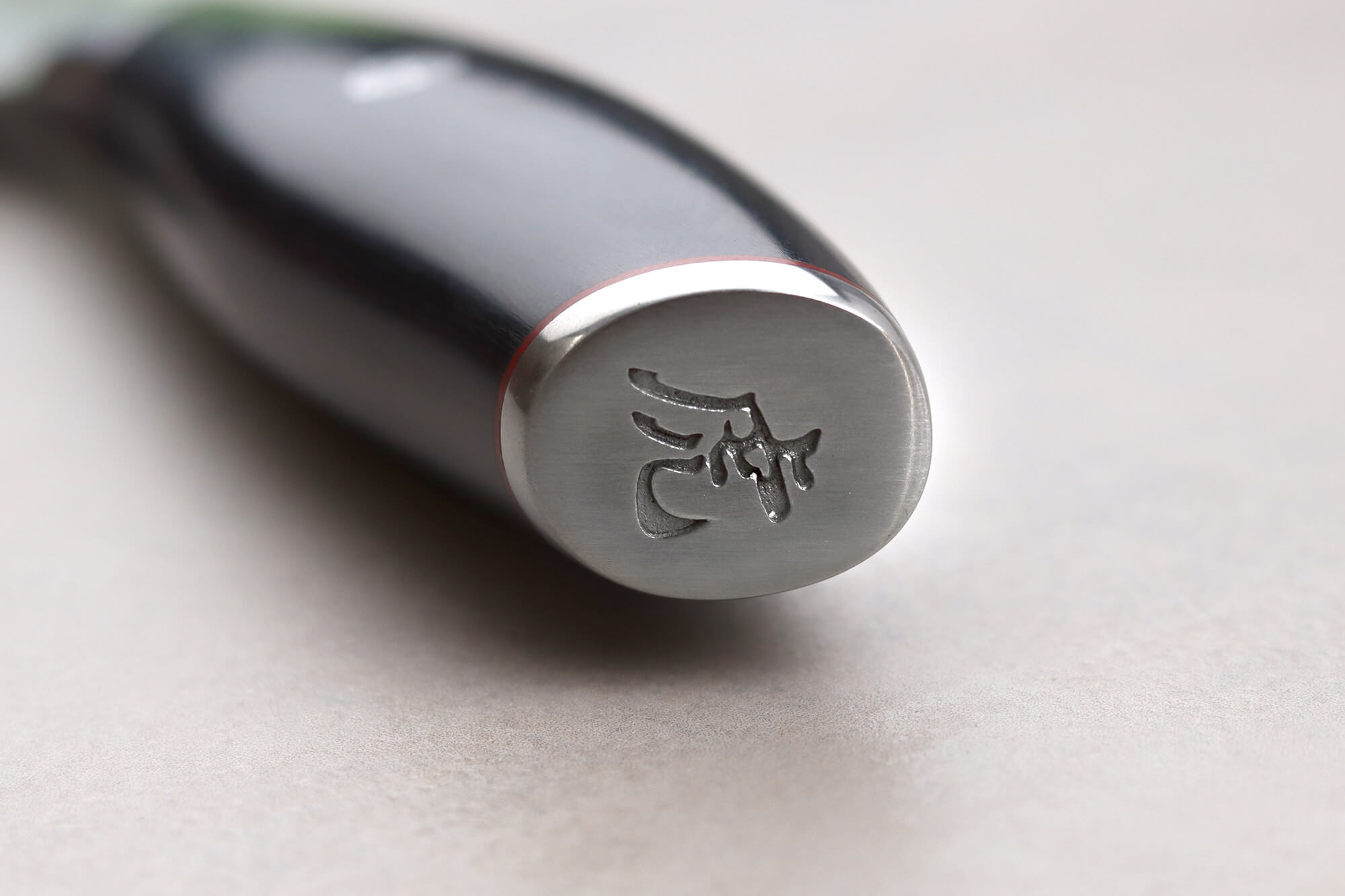 Culot biseauté en inox assurant le bon équilibre du couteau - Kanji Tigre