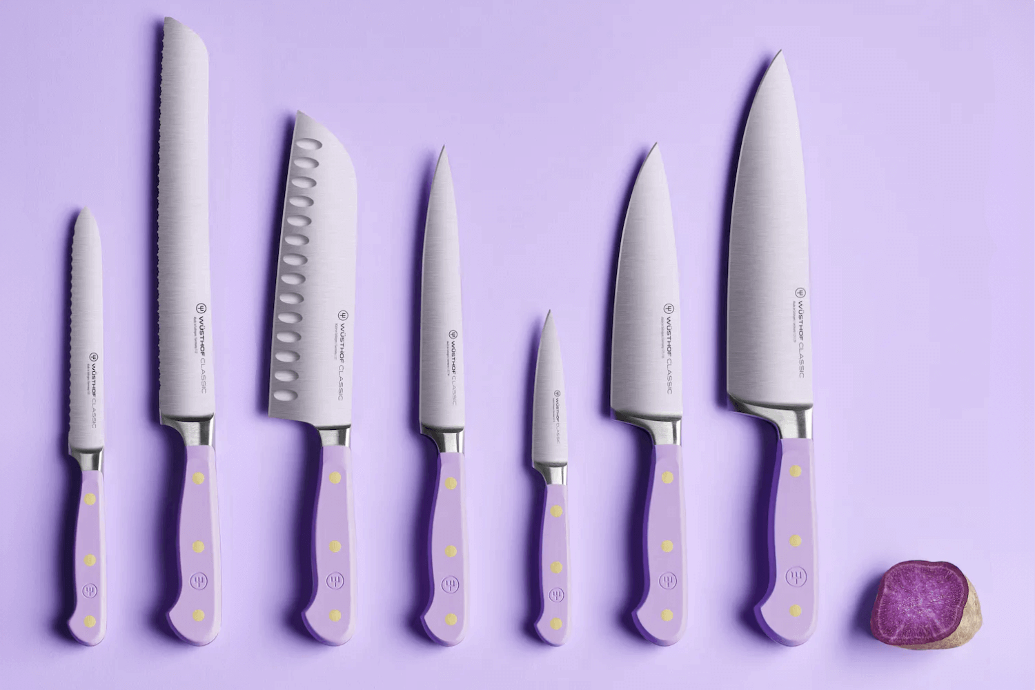 Découvrez la nouvelle collection Classic Colour Wusthof qui apporte une touche de couleur à votre cuisine. Wüsthof enrichit sa gamme afin de répondre aux souhaits des passionnés de cuisine de tout âge, désireux d'ajouter plus de couleur et de style dans leur vie, et surtout dans leur cuisine ! Cette fois-ci, la marque allemande propose 5 couleurs tendances et 8 types de lames pour un large éventail d'options. À vous de choisir ceux qui reflètent le mieux votre personnalité.