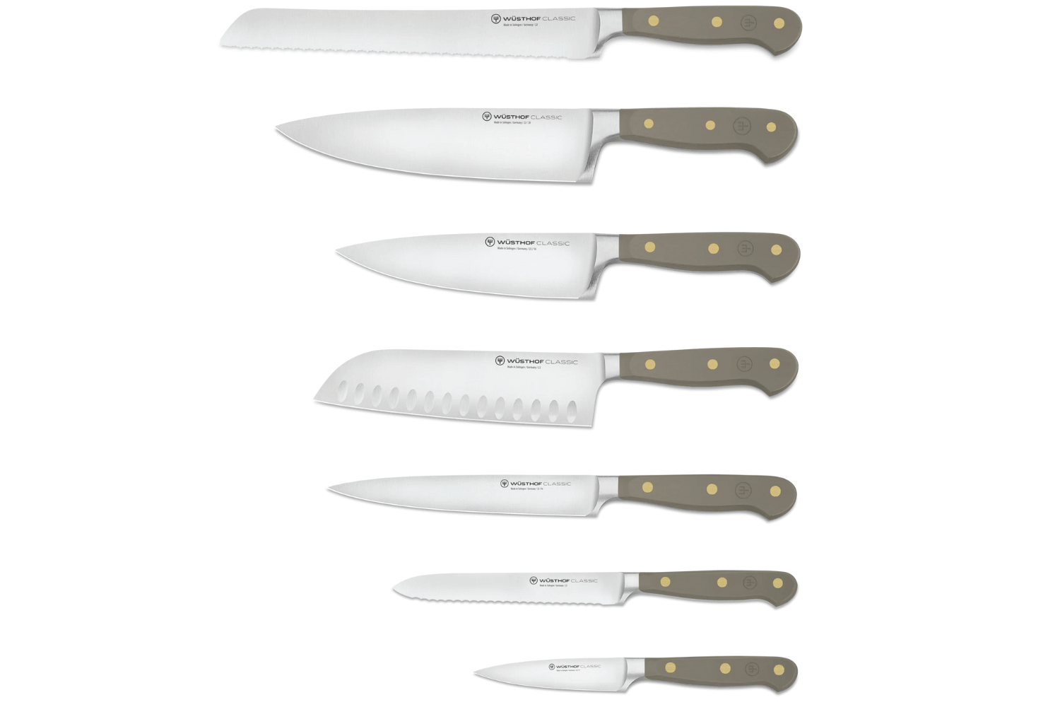 Ce bloc de 7 couteaux Wüsthof Velvet Oyster abrite tous les couteaux indispensables en cuisine. Vous apprécierez chaque moment passé à les manier.