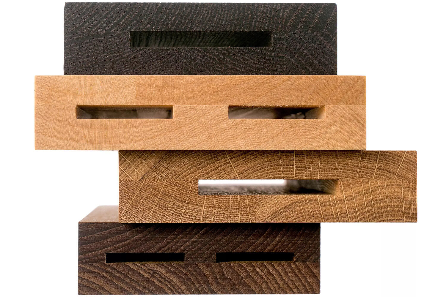 C'est un bloc fabriqué à partir de plusieurs essence de bois : de l'érable, du hêtre, du chêne et du chêne fumé. Ce sont des bois durables de haute qualité qui sont robustes et résistants face à l'humidité.