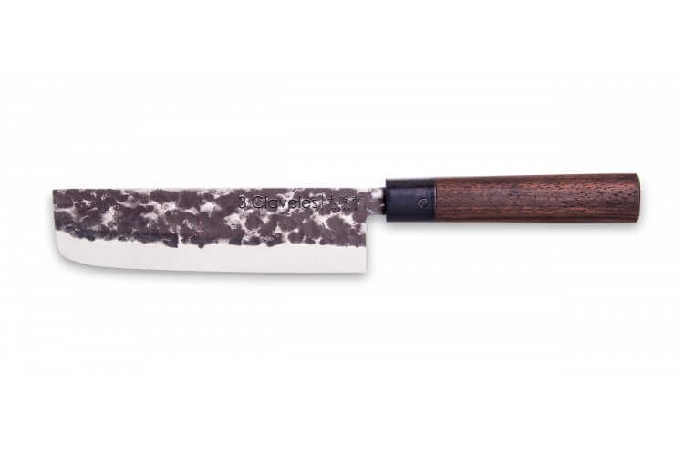 Le couteau nakiri 3 Claveles Osaka présente une lame de 18cm fabriquée en acier inoxydable. Cet alliage est idéal pour une meilleure résistance face à la corrosion et aux chocs, pour une longue tenue sur la durée. La lame est forgée à la main, et elle est finement martelée sur sa surface supérieure, pour toujours plus d'authenticité !