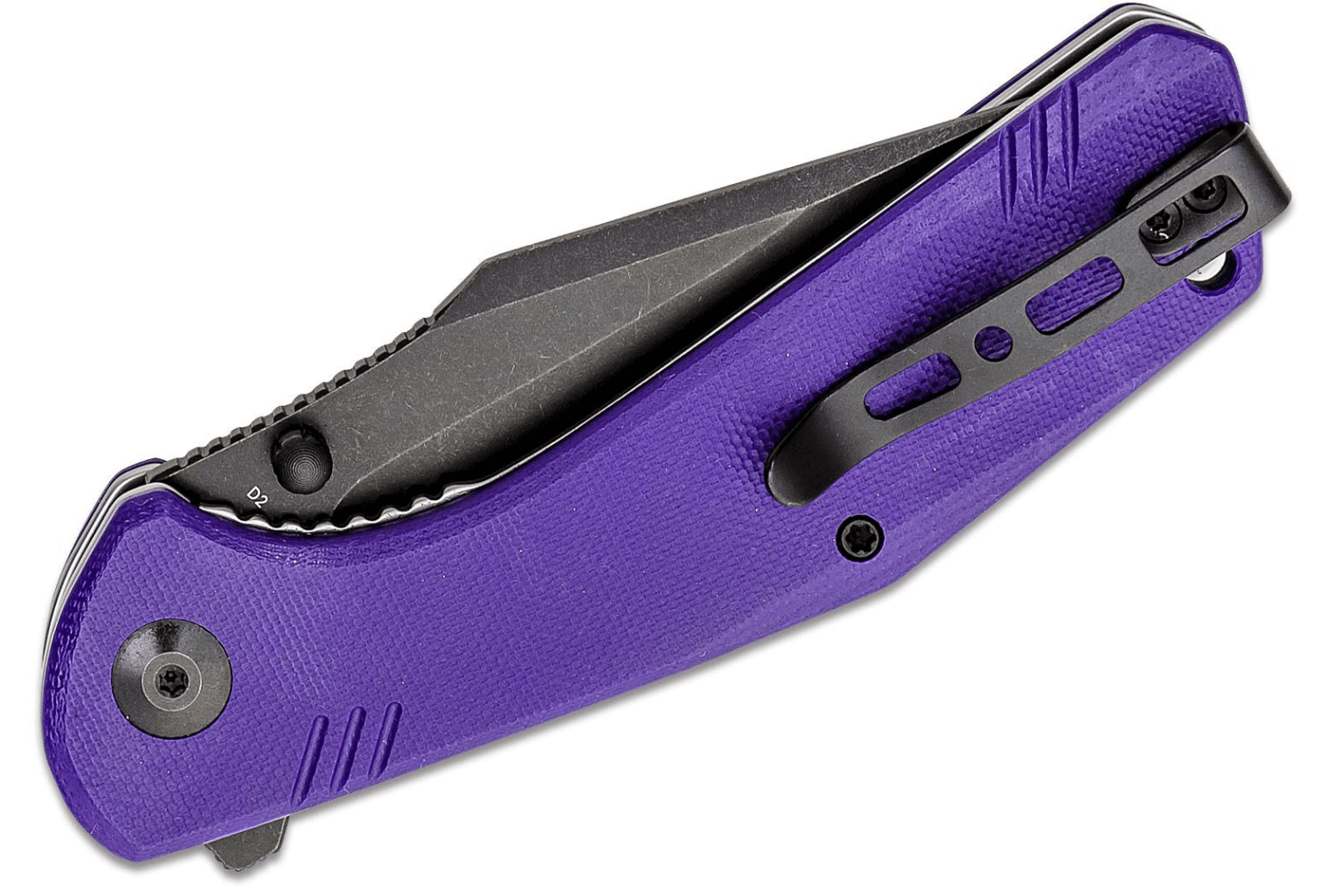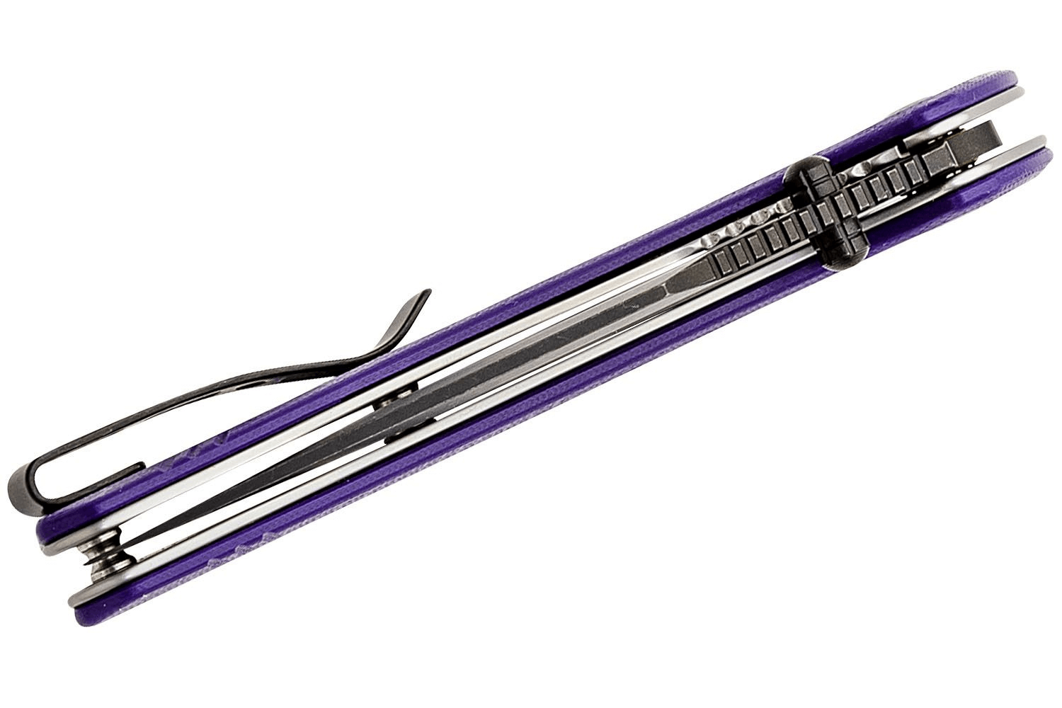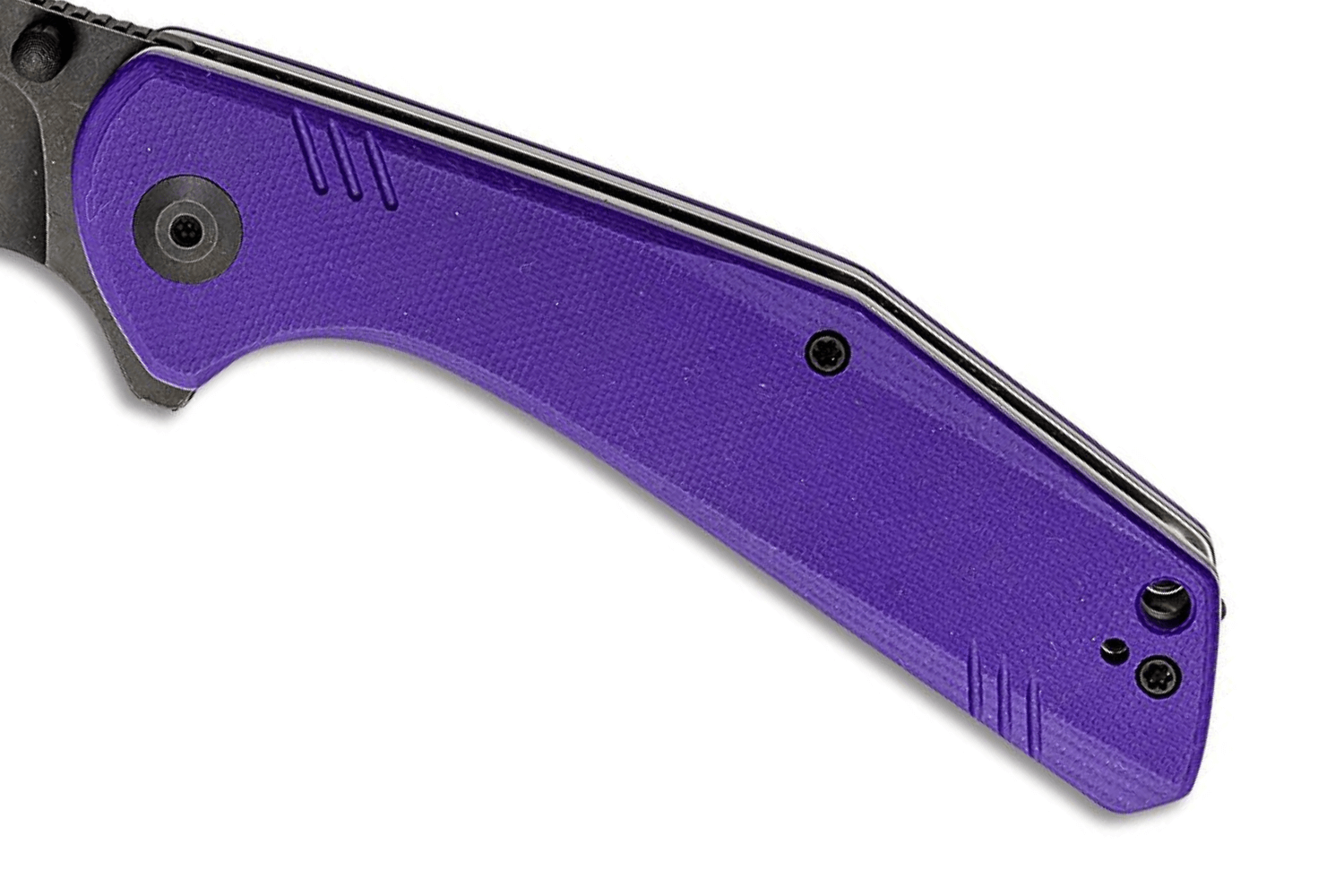 Il intègre une lame en acier D2 très solide. Ce tranchant est doté d'une finition blackwashed très élégante pour masquer les traces d'utilisation. Du reste, son manche en G10 violet est très ergonomique. Cette poignée vous assure une prise en main parfaite et confortable. Choisissez ce couteau Actium SA02D, vous ne serez pas déçu de sa qualité !